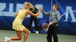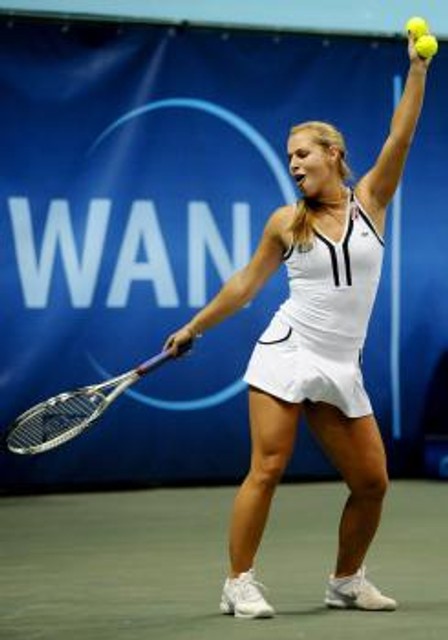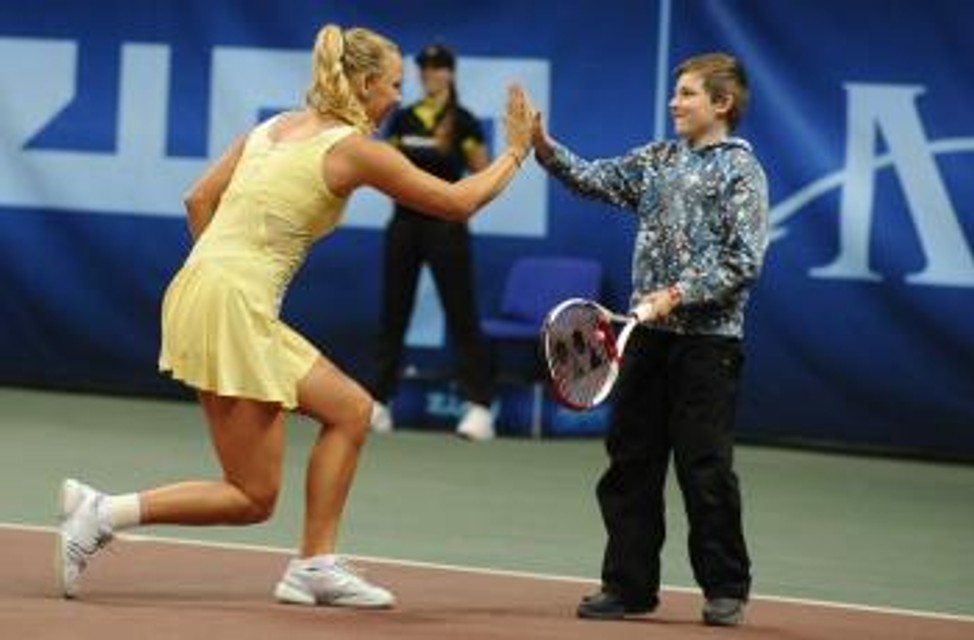 Voľné chvíle si tenistky krátili tanečnými kreáciami a dostalo sa aj na imitáciu Rusky Marie Šarapovovej, s patričnými "zvukovými efektmi", či Novaka Djokoviča a Daniely Hantuchovej. Prvý set vyhrala Cibulková 6:4, po čom jej súperka vyzvala divákov, aby jej doniesli šampanské. O chvíľu si už obe pripíjali. V druhom sete si Dánka vybehla na rozhodcovskú stoličku a miesto na kurte prepustila mladému fanúšikovi, ktorý si zahral výmenu s Cibulkovou.