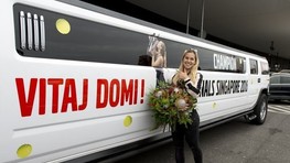 V utorok predpoludním ju na letisku vo viedenskom Schwechate čakali okrem televíznych štábov, fotografov a novinárov desiatky fanúšikov s oslavnými transparentmi, vrátane dvoch tiet, ktoré jej tam priniesli jej milovaných yorkshírov – Woodyho a Spajka. Priamo v letiskovej hale odpovedala Dominika na zvedavé otázky reportérov, medzi ktorými bol aj jej kamarát Matej Cifra alias Sajfa, ktorý ju zaskočil otázkou, či sa už teraz môžeme tešiť na malú Dominiku. „Ako to myslíš? Čo si sa zbláznil?“ s úsmevom reagovala naša tenistka, ktorá však pripustila možnosť, že ak by sa jej podarilo vyhrať nejaký veľký turnaj, tak by o prípadnom materstve už aj uvažovala.