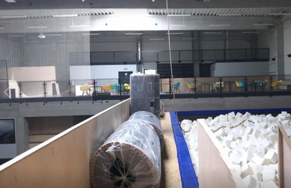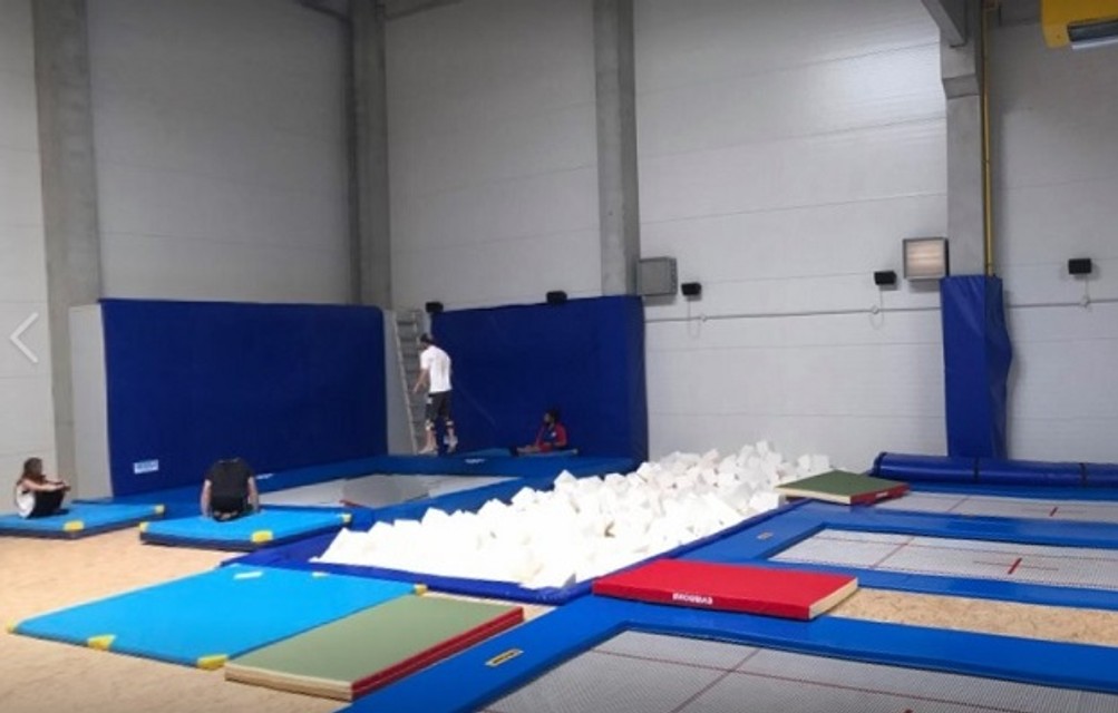 V hale nájdete miesto na skoky s tromi výškovými platformami. Určená je na BMX, kolieskové korčule a skateboardy, ale aj pre lyže a snowboard. Dopadať budete do penového bazéna s rozmermi 12×9 metra. Na 1. nadzemnom podlaží vznikol priestor vhodný pre začínajúcich aj pokročilých skateboardistov. V hale je zakomponovaných niekoľko prekážok na trénovanie.