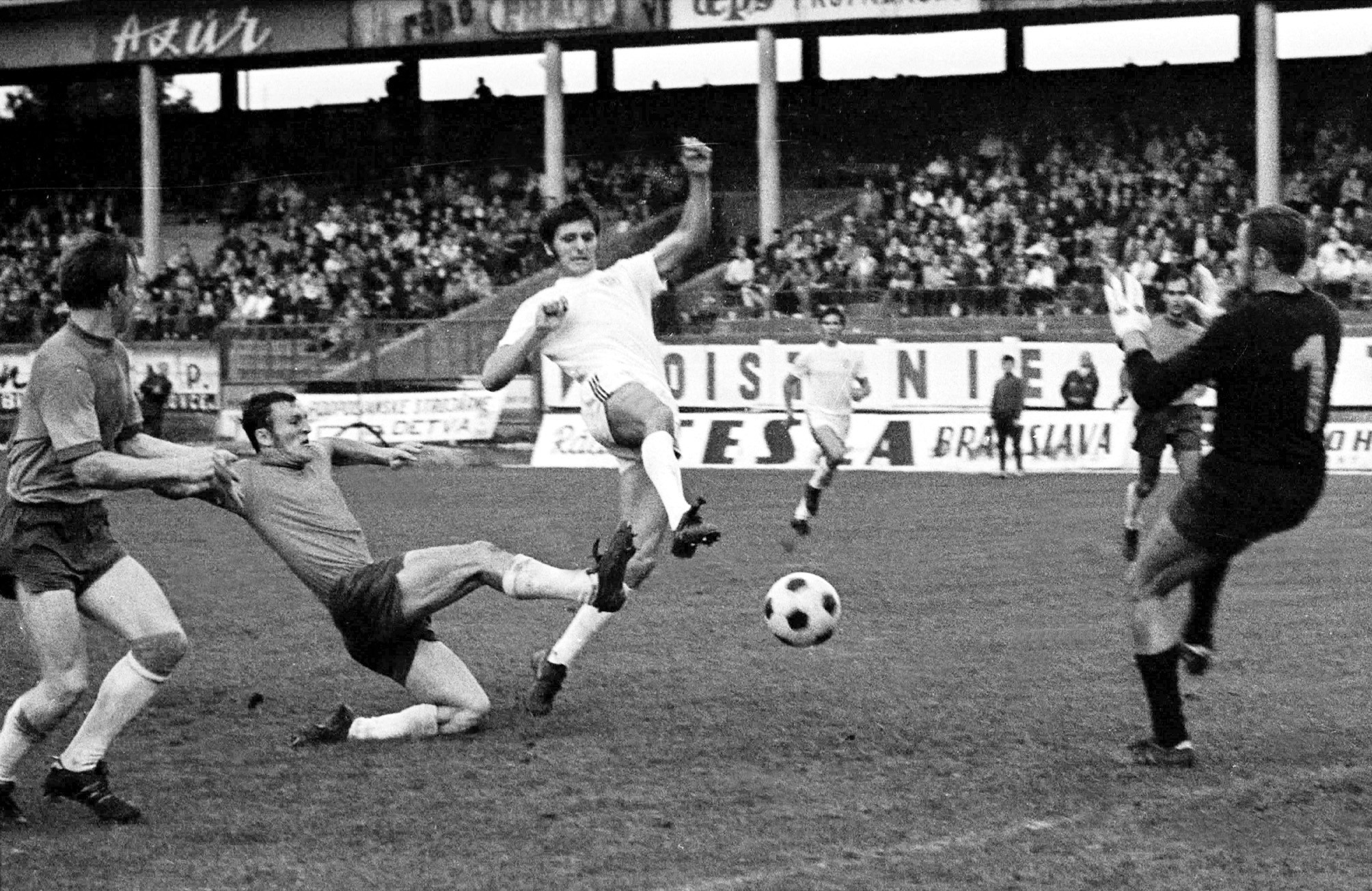 Jozef Čapkovič (uprostred) v drese Slovana v roku 1970: