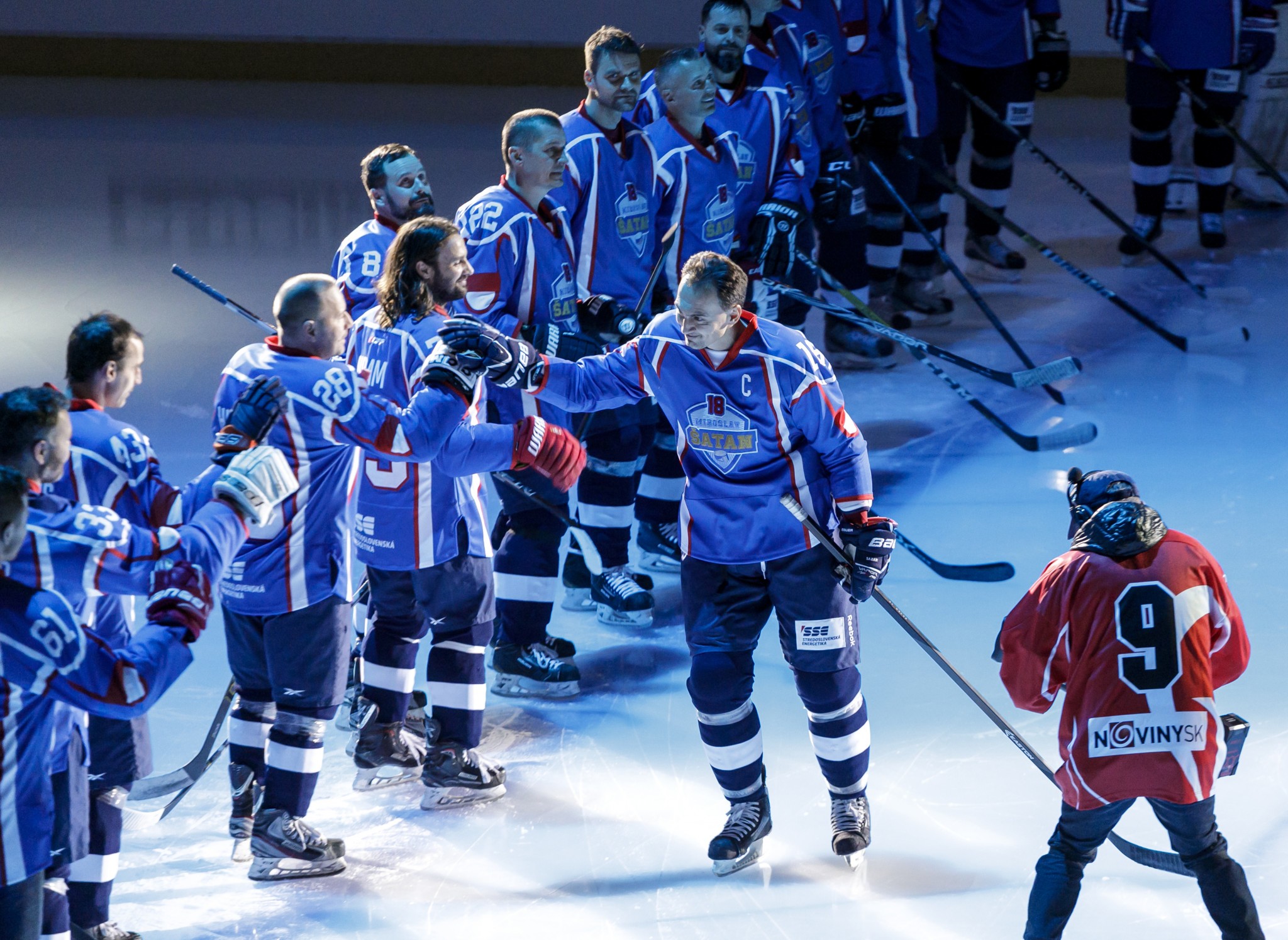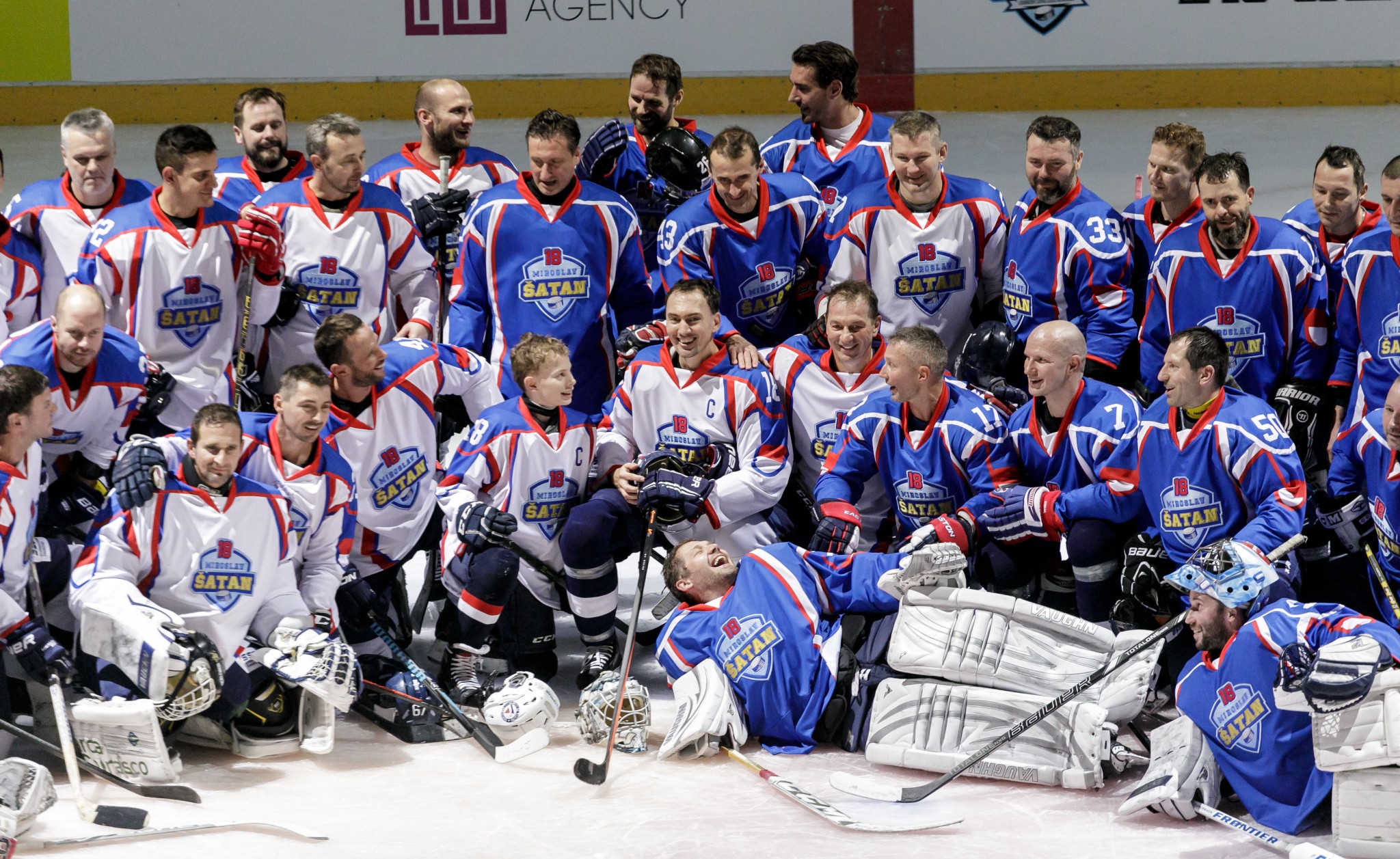 Miroslav Šatan si na zápas pozval bývalých spoluhráčov z reprezentácie Slovenska, v ktorej Šarky pôsobil od roku 1994 do roku 2014. Takže na ľade sa stretlo niekoľko hráčskych generácií od veteránov až po tých, ktorí aj napriek veku ešte stále brázdia ligové štadióny. Biely tím hral v zostave Rastislav Staňa, Miroslav Šimonovič, Miroslav Lipovský, Richard Lintner, Dušan Milo, Peter Podhradský, Radoslav Suchý, Ivan Droppa, Ladislav Čierny, Dominik Graňák, Branko Radivojevič, Ľubo Vaic, Rastislav Pavlikovský, Tomáš Surový, Ján Pardavý, Ján Lipiansky, Michal Hreus, Vlastimil Plavucha, Tibor Višňovský, Tomáš Surový, Jozef Stümpel a Peter Bondra. V zostave Modrých sa objavili brankári Ján Lašák, Ján Laco, Martin Štrbák, Ľubomír Sekeráš, Rastislav Pavlikovský, Boris Valábik, Radoslav Hecl, Juraj Pauček, Ľubomír Višňovský, Radovan Somík, Richard Kapuš, Martin Cibák, Marek Uram, Ľubomír Hurtaj, Peter Bartoš, Peter Pucher, Milan Bartovič, Ladislav Nagy a Michal Handzuš. Exkluzívne bolo aj trénerské kvarteto - Ján Filc a Július Šupler na jednej strane a na druhej otec František Hossa a jeho syn Marián Hossa.