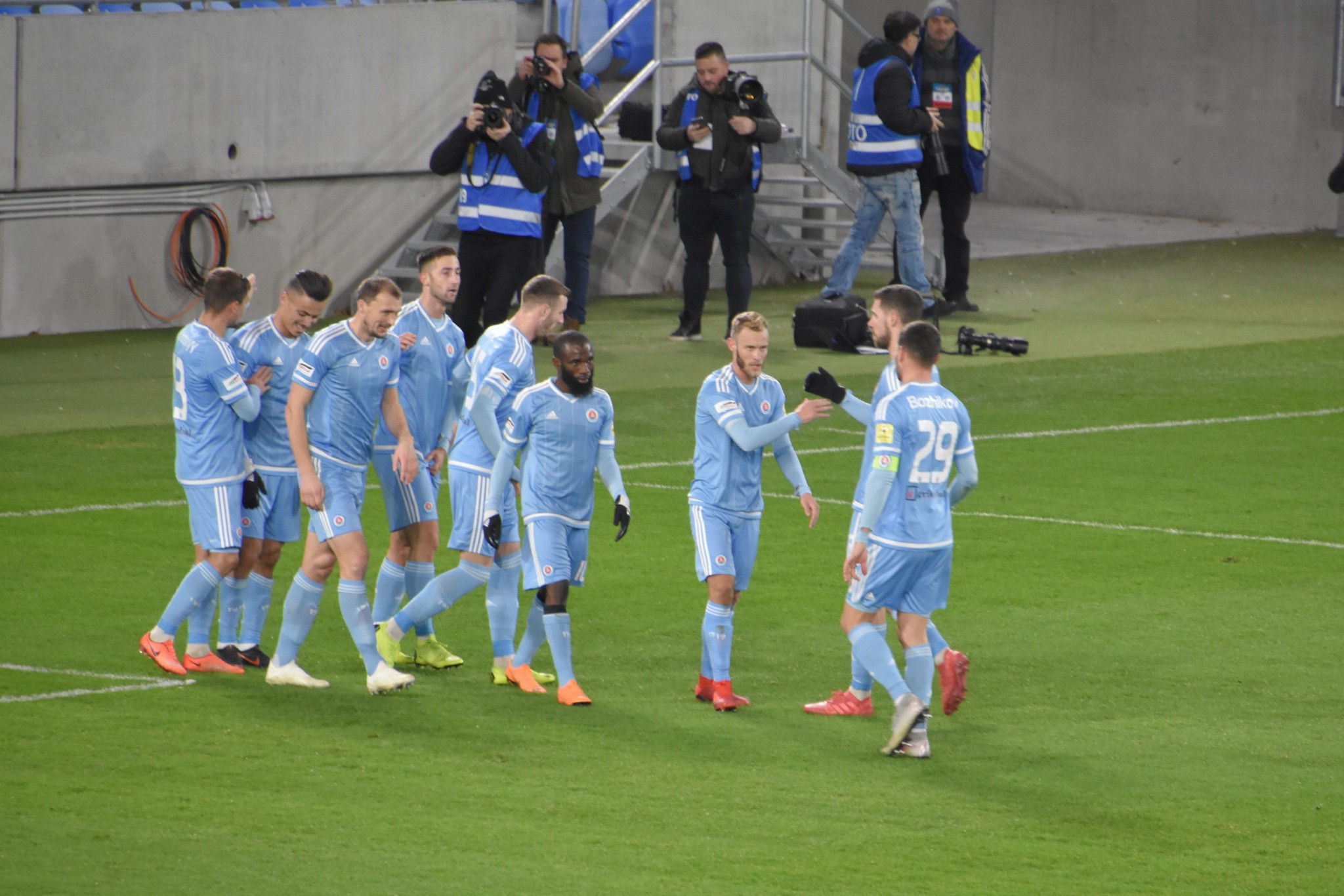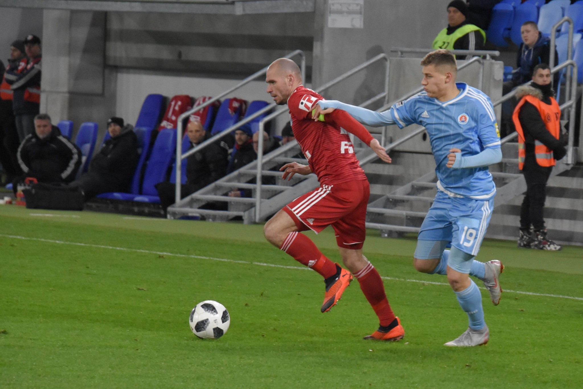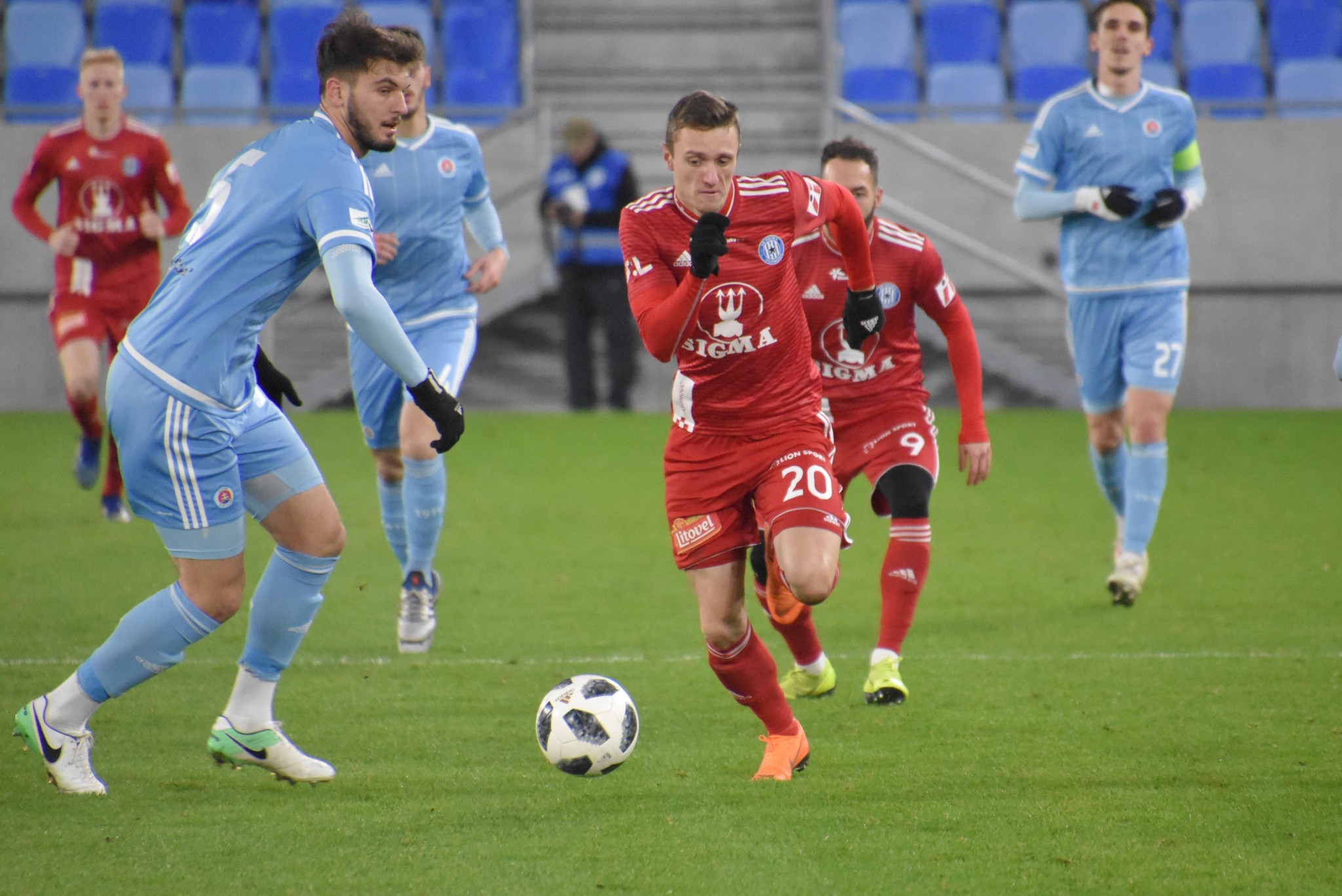 Vedúce mužstvo jesennej časti slovenskej Fortuna ligy malo v zápase proti súčasnému 14. tímu najvyššej českej súťaže viac z hry, ale z triumfu sa tešil súper. Po úvodných šanciach Slovana sa o historický prvý gól na novom štadióne postaral hlavou Moha. Na 2:0 mohol zvýšiť Šporar, ale až po zmene strán sa skóre menilo, keď hostitelia nastúpili kompletne s novou jedenástkou. Jemelka presnou hlavičkou vyrovnal, Yunis zabezpečil Sigme vedenie 2:1, ale Medveděv po peknej kombinácii vyrovnal. Z víťazstva sa napokon predsa len tešila Sigma, keď dve minúty pred koncom Zahradníček po sóle stredom ihriska prekonal 18-ročného odchovanca Martina Trnovského, ktorý po polčase v bráne nahradil Michala Šullu.