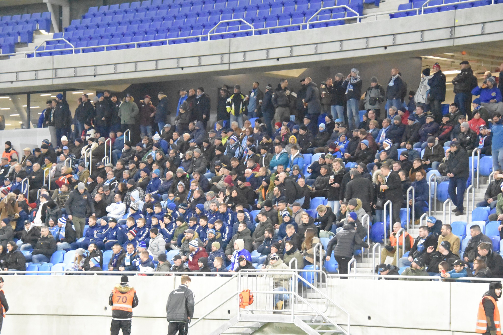 Tentoraz išlo o testovací zápas nového moderného štadióna s obmedzenou kapacitou. Stredajší duel s Olomoucom bol určený výhradne pre držiteľov permanentných vstupeniek, ktorí sa pri vstupe na štadión preukázali platným "voucherom" v elektronickej alebo papierovej podobe. Otvorená bola hlavná tribúna (sektory A), kde mali fanúšikovia k dispozícii voľné sedenie. Zámerom vedenia ŠK Slovan nebolo v stredu veľkolepé otvorenie nového štadióna, skôr snaha otestovať hraciu plochu, osvetlenie, turnikety, interiér, šatne a celkové zázemie.