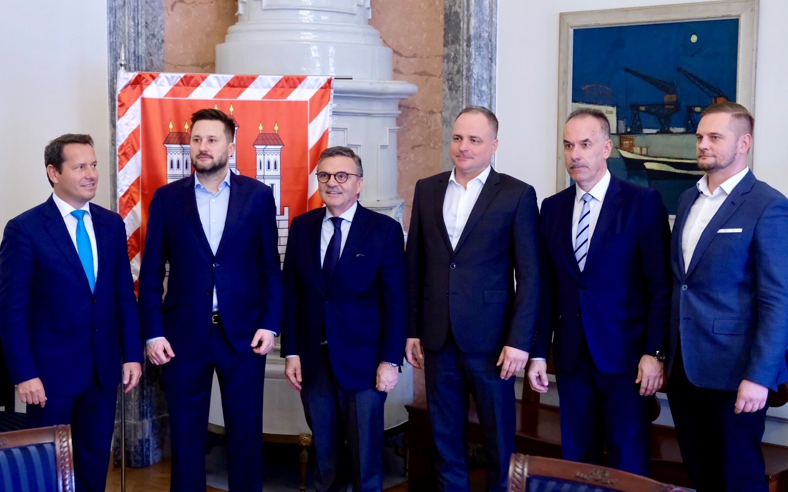 René Fasel na magistrát (vľavo od neho Matúš Vallo, vpravo Juraj Droba, Igor Nemeček a viceprimátor Juraj Káčer) :
