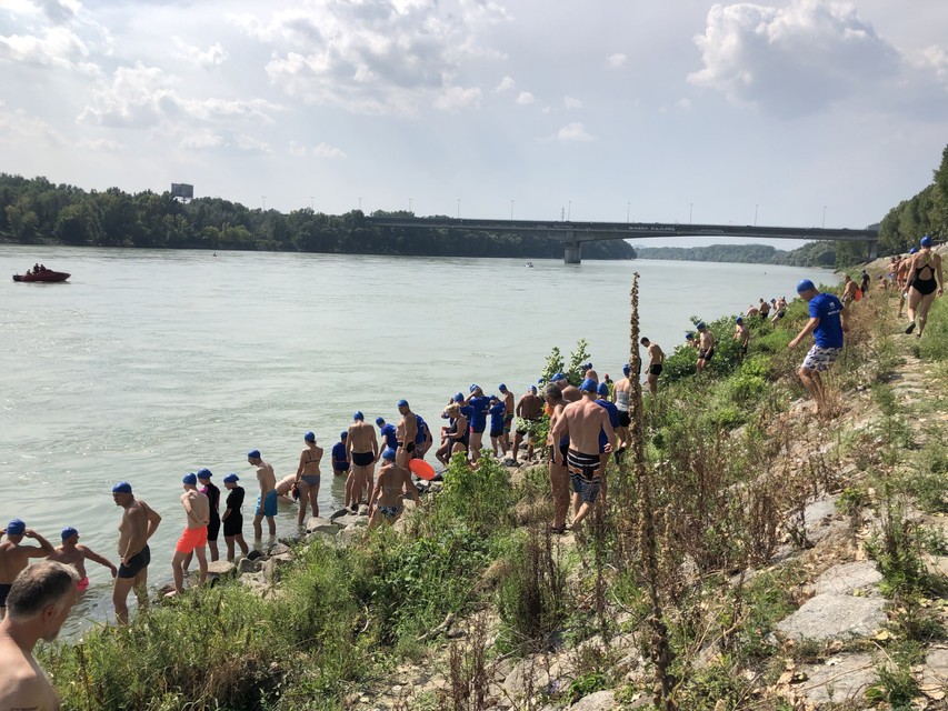 Spoločne sa štartovalo na dve vlny. Organizátor informoval všetkých pred štartom prostredníctvom megafónu o základných podmienkach akcie. Upozornil, že táto akcia nie sú preteky a nikomu sa teda nemeria čas. Prví plavci sa vrhli do Dunaja o 14-tej hodine pri brehu pri PKO a na Dunaj sa naskytol naozaj zaujímavý pohľad, keď ho zaplavili modré čapice tisícky plavcov. Druhá skupinka vyrazila o štvrť hodinku neskôr. Počasie plavcom prialo, okrem vysokých teplôt plavcov intenzívne ohrievalo aj slniečko.