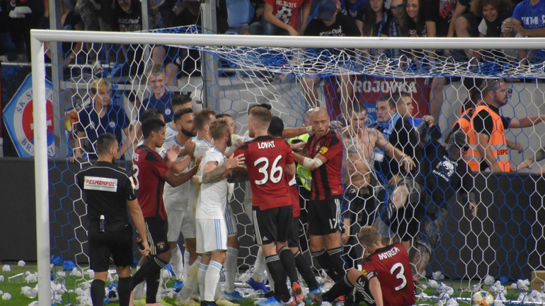 "Sektor C od prechodu na nový štadión pravidelne vytvára na zápasoch skvelú atmosféru, ku ktorej dokáže strhnúť celý štadión. Pokiaľ však chceme napredovať a zachovať si na zápasoch pozitívnu športovú atmosféru, musíme exemplárne a tvrdo trestať jednotlivcov, ktorí sa správajú za hranicami pochopiteľného a normálneho správania a zároveň poškodzujú nielen meno klubu, ale aj všetkých fanúšikov a taktiež celého C-sektora," uzatvára svoje stanovisko futbalový Slovan. Aj včerajší incident na Tehelnom poli bol dôkazom o tom, že niektorí ľudia sa na športových podujatiach nevedia správať. To, že pri používaní pyrotechniky zapálili vlastné zástavy, by sa možno aj dalo označiť za nedopatrenie, ale pokiaľ sa na tribúne budú nachádzať jedinci, pre ktorých nie je problém vybehnúť na hraciu plochu a zaútočiť na hráčov súpera, tak zostávajú dve možnosti - buď sa aj sektor domácich tzv. kotol zabezpečí podobne ako sektor hostí, teda vysokým plexisklom či sieťami, aby nespratníci nemohli nič hádzať na ihrisko ani sa naň tak ľahko dostať alebo takýchto ľudí na štadión nevpustiť. V opačnom prípade Slovanu reálne hrozí, že zápasov bez divákov bude pribúdať. Ten najbližší odohrá mužstvo domáceho klubu už tento štvrtok v zápase Európskej ligy proti Besiktasu Istanbul...