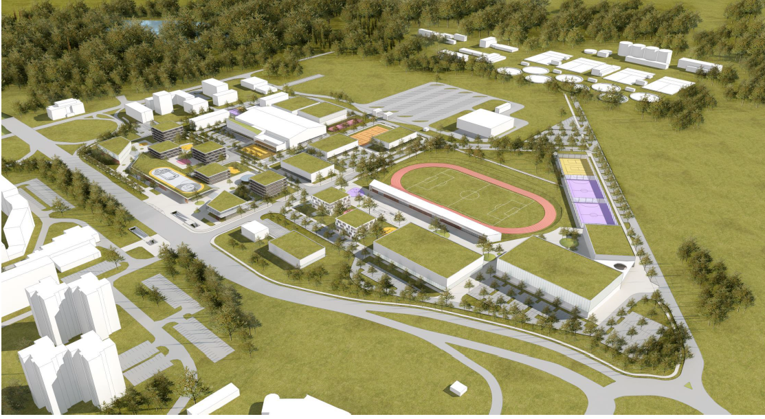 Mala by tu byť multifunkčná hala pre halové športy (basketball, florbal, hádzaná, sálový futbal...), zároveň bude umožnené viacúčelové využitie pre kultúrne a spoločenské akcie a eventy. Ďalej zimný štadión s doplnkovou časťou pre regenereráciu s bazénom, saunou, malá tréningová hala pre halové športy. Priestor by tam mali nájsť aj fitnescentrá, kolkáreň či bowlingová hala, plocha pre petanque a outdoorové športy ako beachvolejbal či beachtenis, lezecké a lanové centrum, bežecký ohruh, ráta sa však aj s obchodmi, službami a ubytovňou či hotelom so 4 poschodiami. Areál by mal mať celoročnú prevádzku. Otázna zostáva vodná plocha s plážou a mólom.