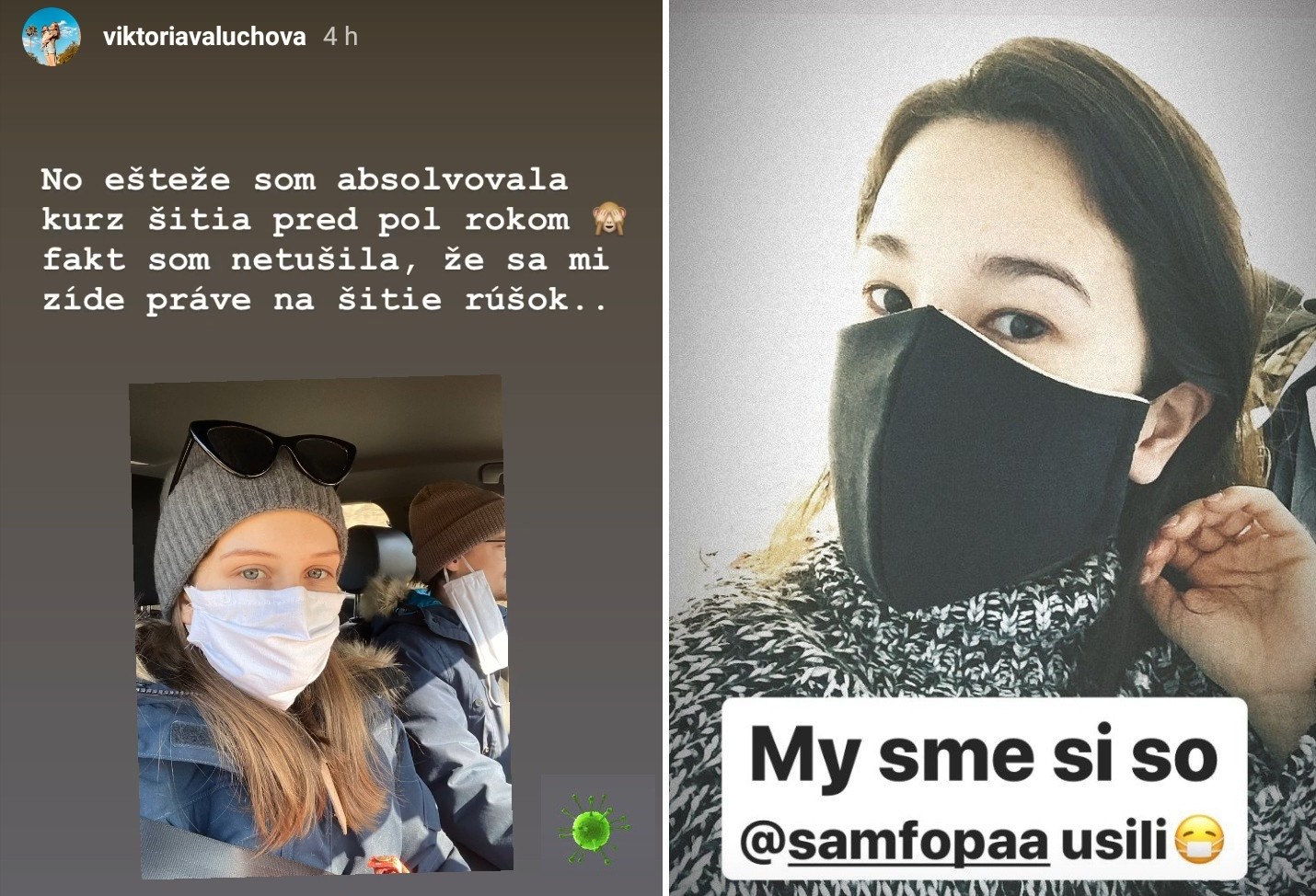 Herečka Viktória Valúchová (vľavo) je momentálne na materskej dovolenke s dcérkou, ktorú má spolu s kolegom Samuelom Spišákom si rúško ušila podobne ako jej divadelná kamarátka Romana Dang Van (vpravo).