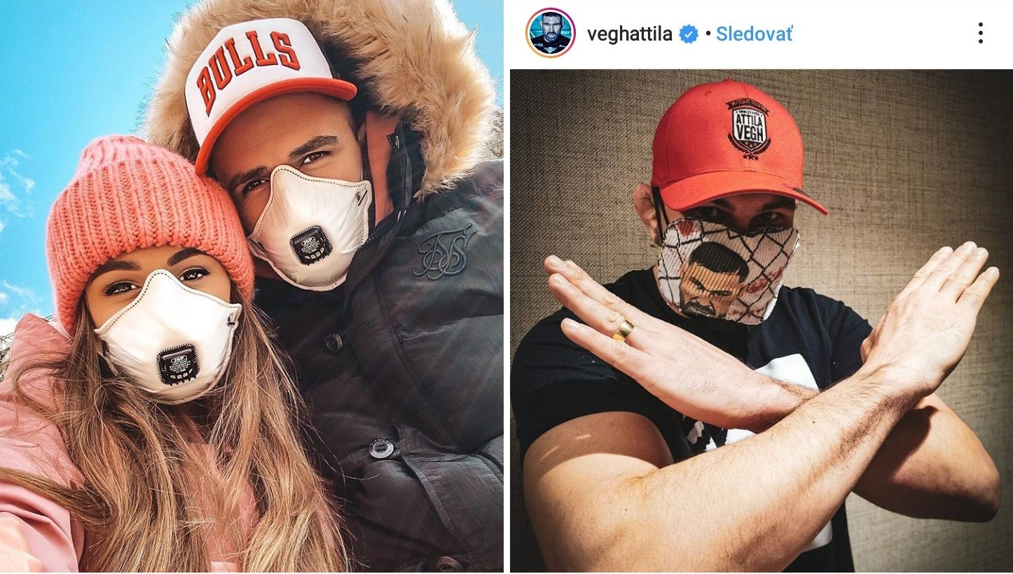 Futbalista Michal Mravec a známa influencerka Tatiana Žideková si zladili aj respirátory a zápasník MMA Attila Végh si zase svoju tvár chráni rúškom, na ktorom je jeho tvár aspoň nakreslená...