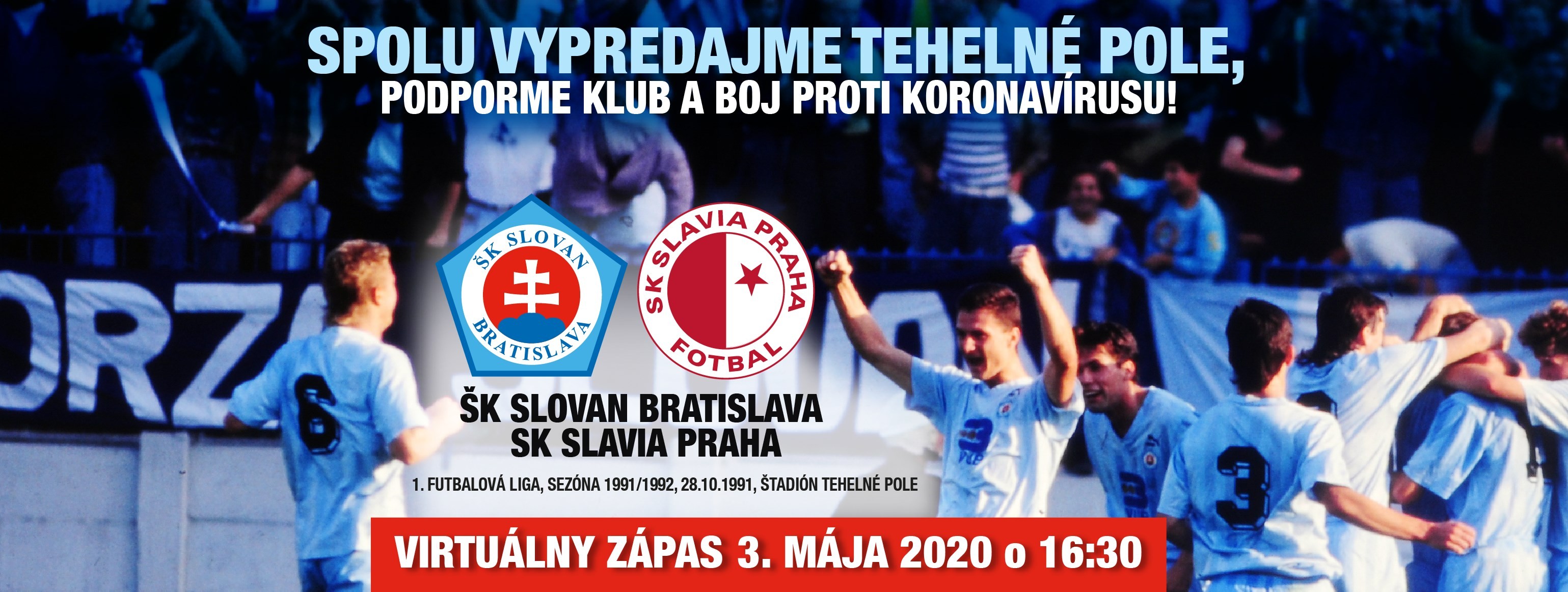 Spolu vypredajme Tehelné pole! Podporme klub a boj proto koronavírusu. Tak znie hlavné motto virtuálneho futbalového zápasu medzi Slovanom Bratislava a Slaviou Praha, ktorý sa uskutoční 3. mája 2020 prostredníctvom internetu. Dovtedy sa naň budú predávať lístky, ktorých je k dispozícii 43 000, teda presne toľko, aká bola kedysi kapacita starého štadióna.