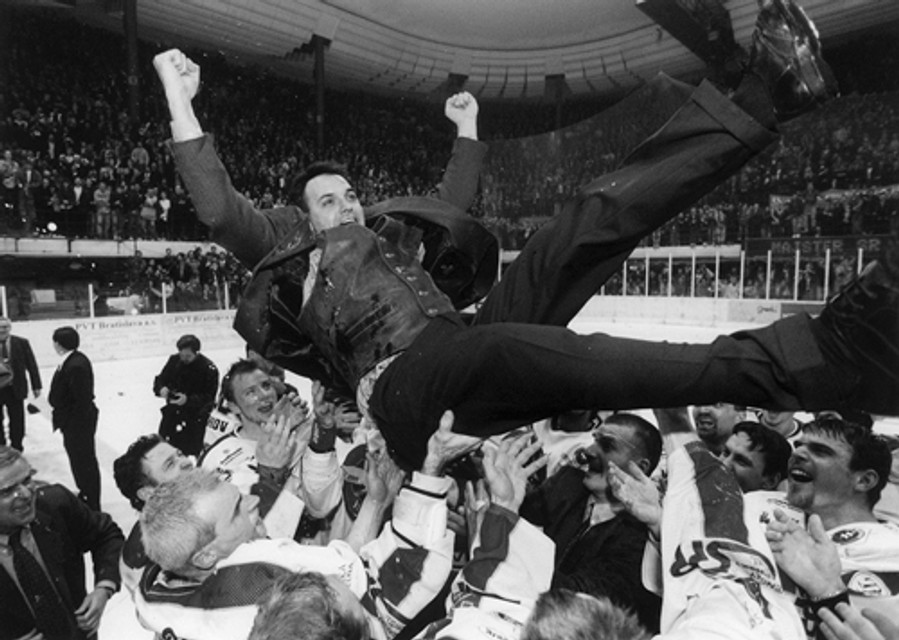 Takúto radosť zažíval Ernest Bokroš pred dvomi rokmi po získaní majstrovského titulu na bratislavskom zimnom štadióne. Po „vyhodení“ zo Slovana sa presunul do Zvolena, ktorý je v tejto sezóne najvážnejším súperom belasých v boji o titul. V piatok 3. marca privedie Ernest Bokroš svojich nových zverencov na bratislavský ľad.