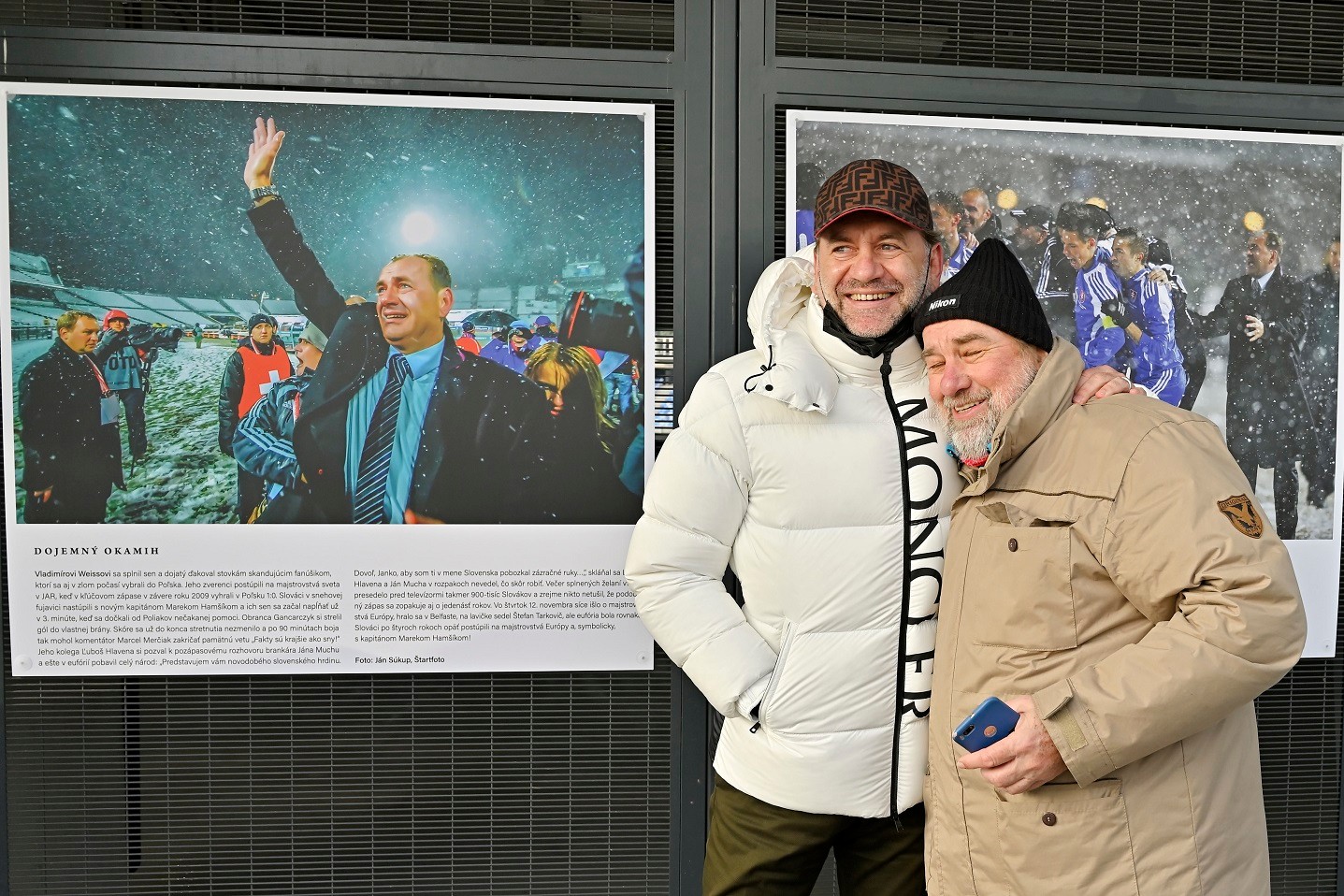 Výstava zaujala aj futbalového trénera Vladimíra Weissa, ktorý sa pristavil najmä pri silných fotografiách z kľúčového zápasu v závere roku 2009 v Poľsku, kde jeho zverenci v snehovej fujavici vyhrali 1:0 a postúpili na majstrovstvá sveta v JAR.