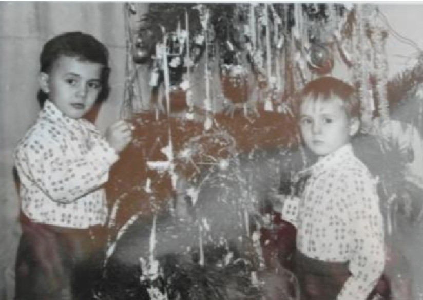 Malý Mirko pri vianočnom stromčeku spolu s mladším bratom Petrom...