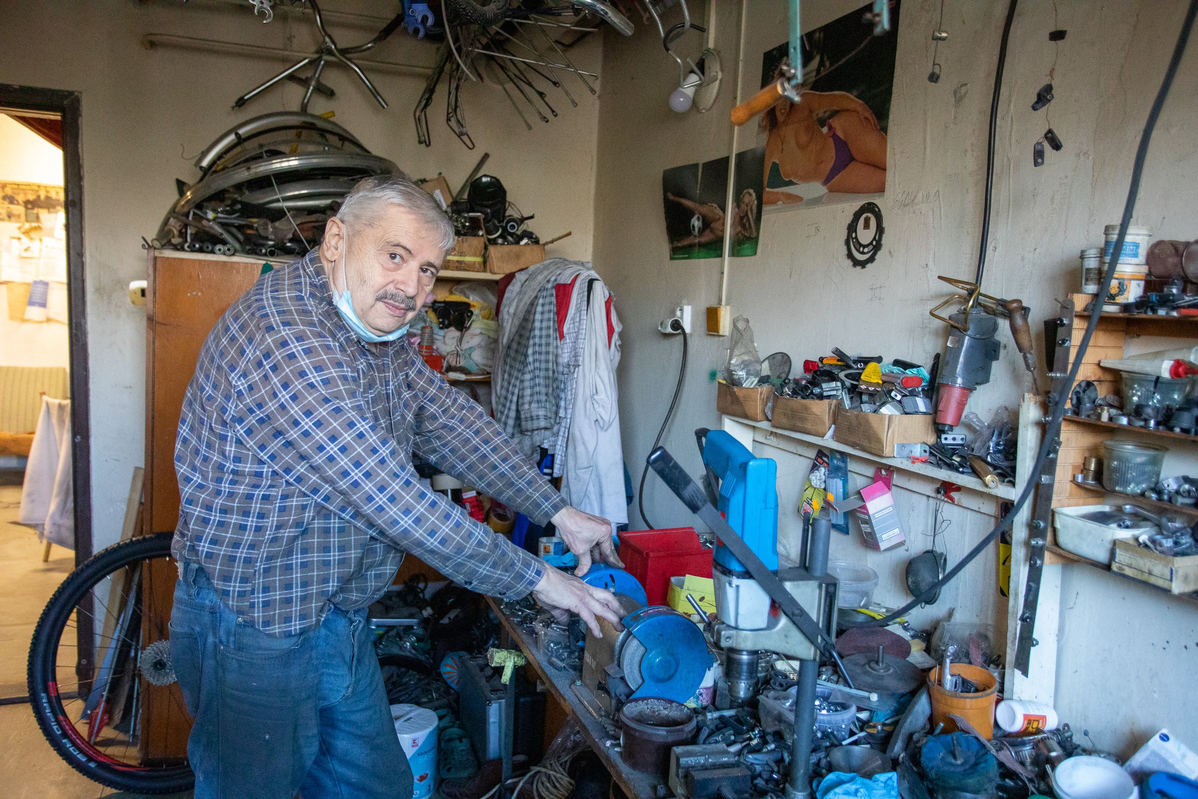 V opravovni pracovala od začiatku aj jeho manželka. Nakúpiť tovar, opraviť, spraviť účtovníctvo... Všetko to roky robia sami dvaja. „Nikdy sme na tom nezbohatli, ale vždy sme mali dosť, aby sme mohli normálne žiť.“ Priestor bol pre nich nielen dielňou, ale aj miestom, kde sa na kus reči zastavili priatelia. A tak je to dodnes. „Niekedy mám pocit, že už je čas skončiť, ale čo by som robil? Sedel doma a pozeral televízor? To by som nedokázal. Tu je stále čo robiť,“ hovorí a spomenie prvý lockdown. „Ľudia nevedeli, čo so sebou a zrazu akoby si všetci spomenuli, žeby mohli bicyklovať. Tak prevetrali svoje pivnice. Toto tu bolo plné 20-, 30-ročných starých bicyklov... Všetky prehnali cez moju opravovňu. Býval som tu od rána od piatej do večera do pol siedmej.“