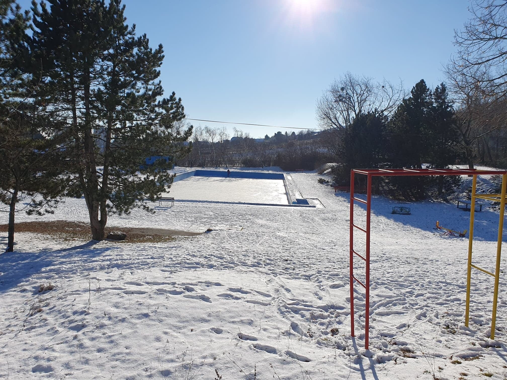 V Rači si ľudia chodia zakorčuľovať či zahrať hokej do areálu letného kúpaliska - v bazéne je to však zakázané!