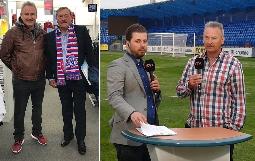 S majstrom Európy z roku 1976 Antonínom Panenkom, ktorý vlani tiež prekonal Covid-19 a ako spolukomentátor RTVS (vpravo) na futbalovom štadióne.