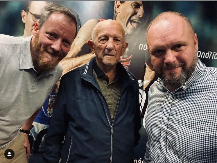 Slovenského pästiara a olympijského medailistu Jána Zacharu (v strede) hrá vo filme Zátopek herec Peter Nádasdi (nie je na snímke)...