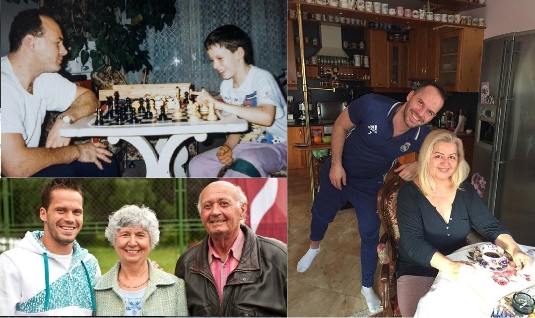Mladý Ceco na archívnych fotkách hrá šach s otcom, pózuje s mamou a starými rodičmi - Irmou a Milanom Pašekom.