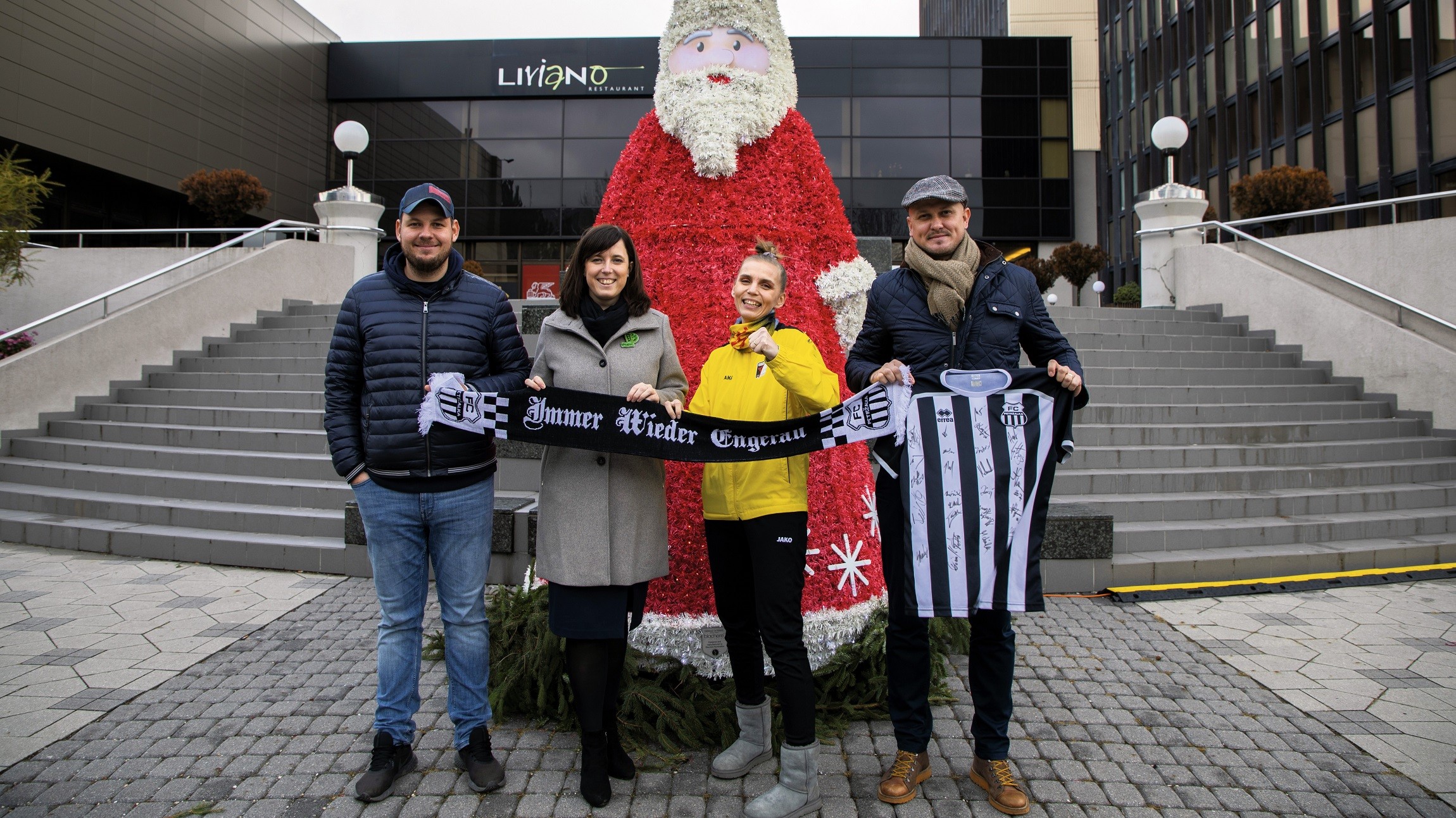 Spojili sa pre dobrú vec. Miroslav Dragun za PHBL, vicestarostka Iveta Jančoková, Kristína Macková zo Športovej školy karate Bratislava a Dominik Tóth za FC Petržalka.