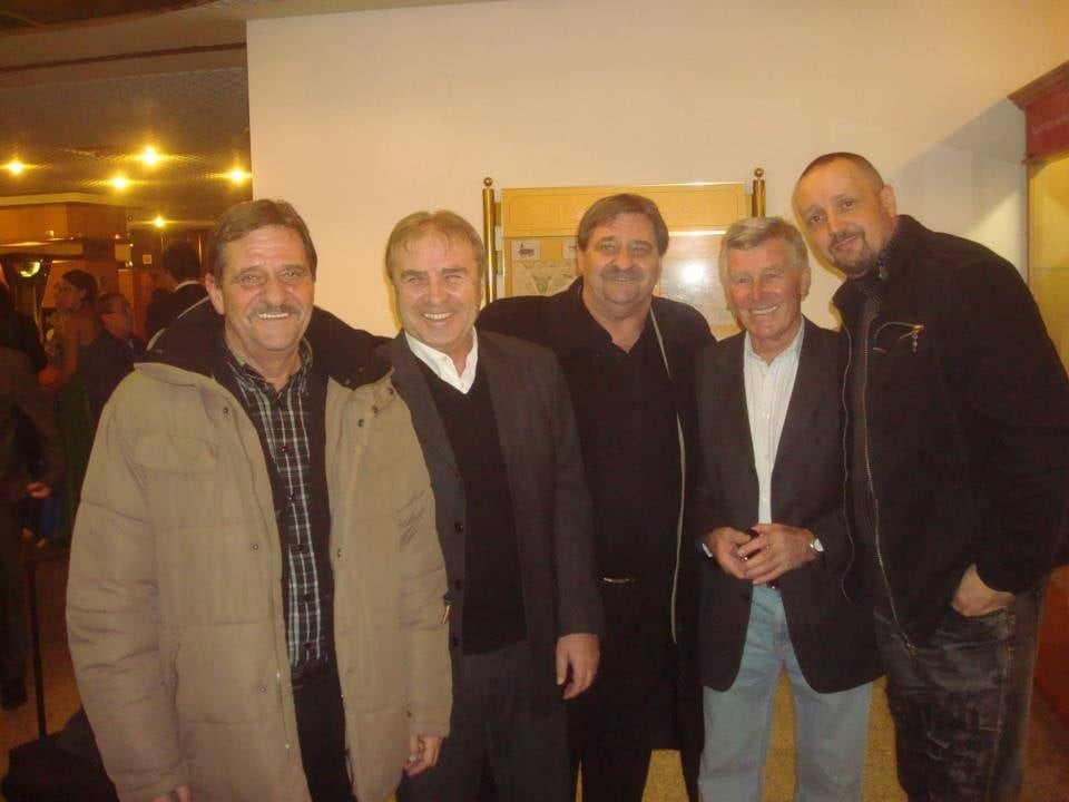 Futbalová partia sa pri stretávkach neustále zmenšuje. Naposledy z nej ubudol Jozef Adamec (druhý sprava), ktorý nás navždy opustil 24.decembra 2018. Na obrázku sú vedľa Ladislava Petráša (druhý zľava) bratia Ján a Jozef Čapkovičovci.