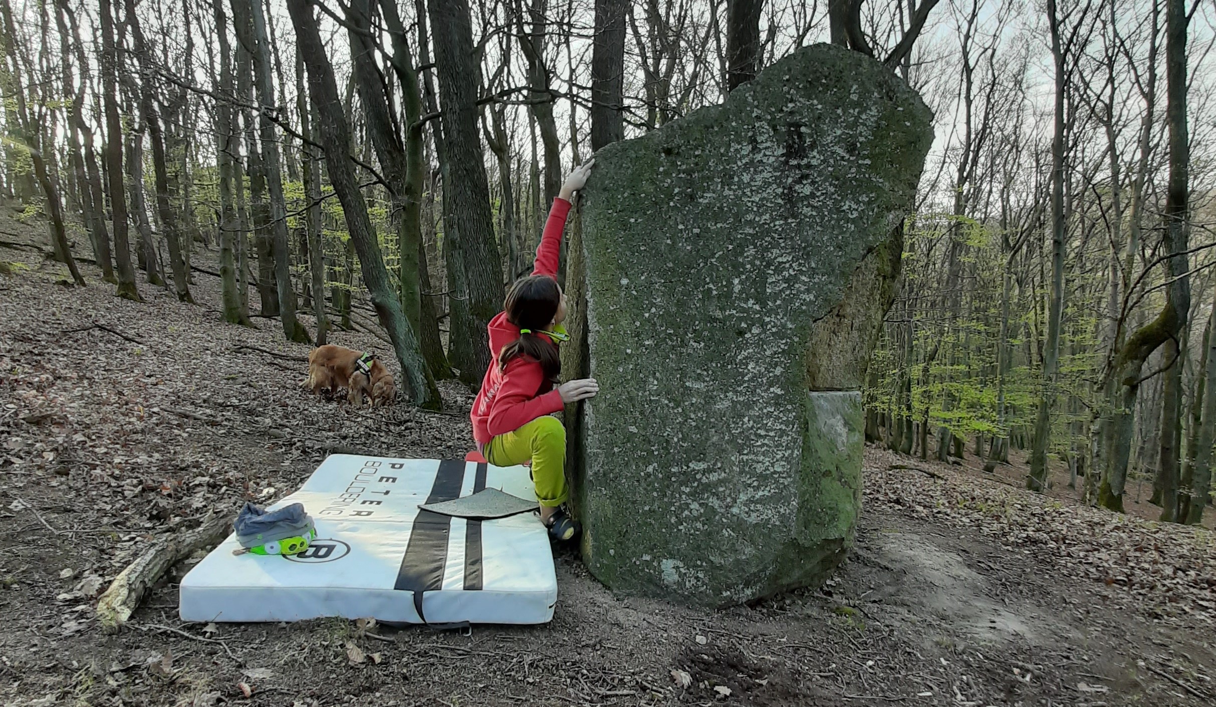 Martina je iný level. Najradšej má bouldering, pri ktorom sa prípadný pád skončí rovno na zemi. Vtedy ide o to, aby ste dopadli na mäkké matrace, ktoré ste si rozložili pod skalou či umelou stenou. Veľkou pomocou je tiež spotter – chytač, ktorý vie váš pád stlmiť a ak treba, správne ho usmerniť.