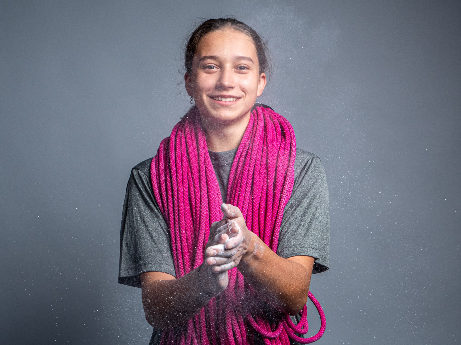 „Práve to je pekné na lezení, že nerozhoduje hrubá sila. Musím vedieť, čo chytiť, kde chytiť, kde mám ťažisko a ako ho rozložím, kam sa môžem navážiť, čo ma podrží... Skrátka, keď leziem, využívam viac hlavu ako silu,“ vysvetľuje pätnásťročná študentka Gymnázia na Grösslingovej ulici.