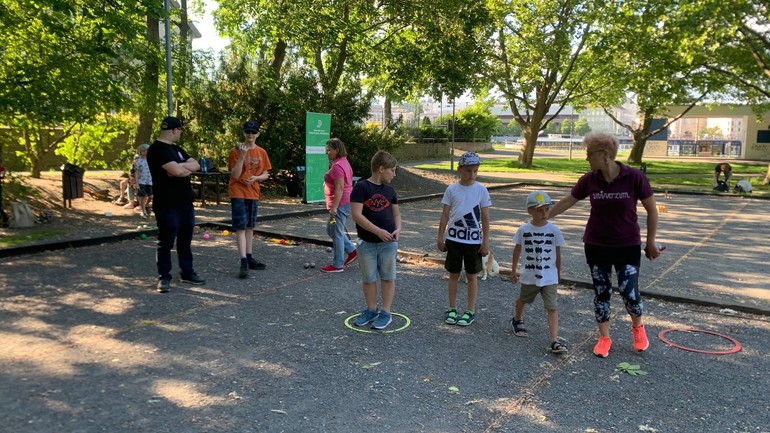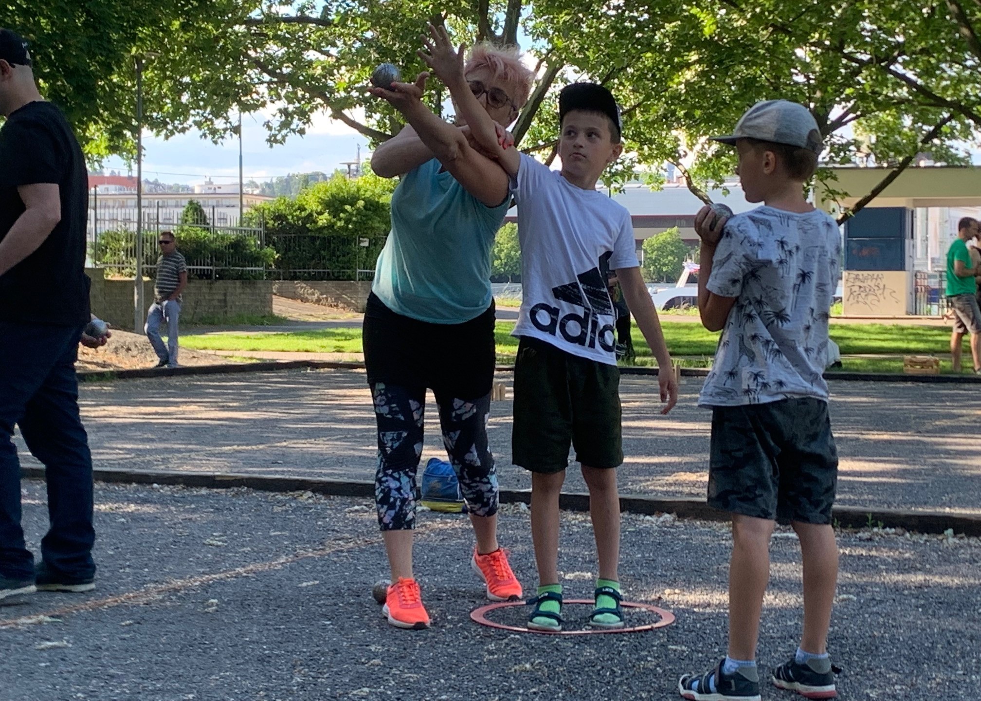 Sledujem 9-ročného Lukyho, ktorý radí svojej babičke Tonke, ako najlepšie hodiť guľu ku košonu. „A to som Lukyho priviedla k petangu ja!“ smeje sa stará mama. Opodiaľ skúšajú svoje prvé hody štyria ukrajinskí chlapci. Tá radosť, keď to vyjde, je nákazlivá. Tiež máte chuť to skúsiť.