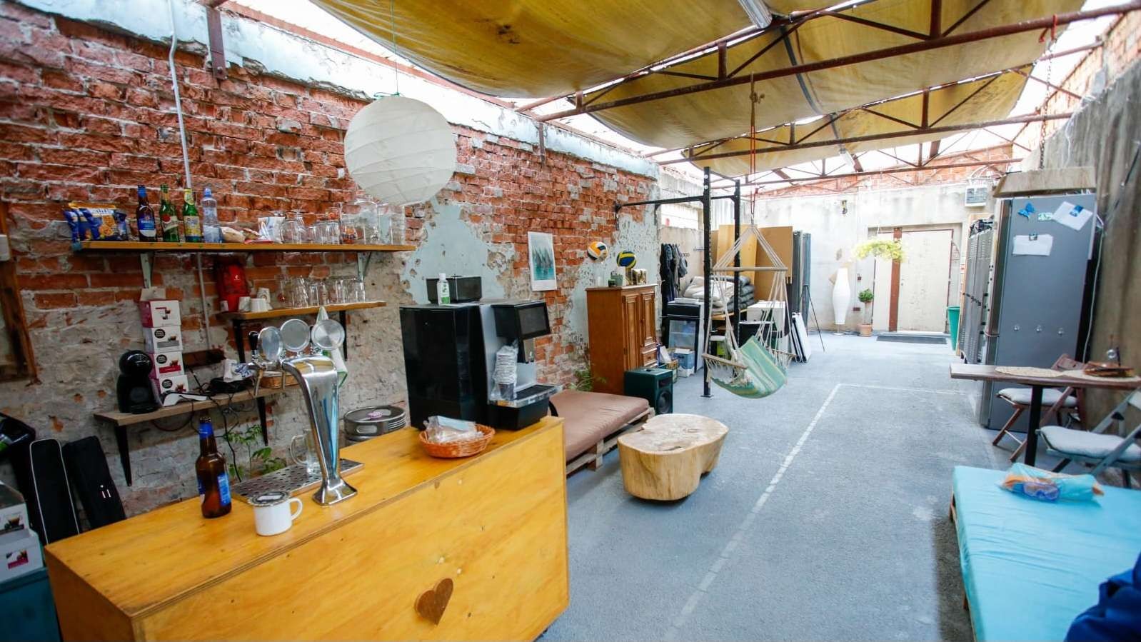 Očarí ma ich svojpomocne vybudované zázemie. Využili múry, ktoré tu zostali po niekdajšom sklade a dnes je hneď za posilňovňou šatňa, skrinky, prezliekacia kabínka, sedenie, občerstvenie, a keď sa tu konajú teambuildingy, súkromné či rodinné akcie, funkčný je aj výčap a vonku gril. Pobaví ma paradox posilňovne v party stane, aj plnohodnotná toaleta napojená na kanalizáciu, ktorá je zvonku zamaskovaná ako klasická drevená latrína.