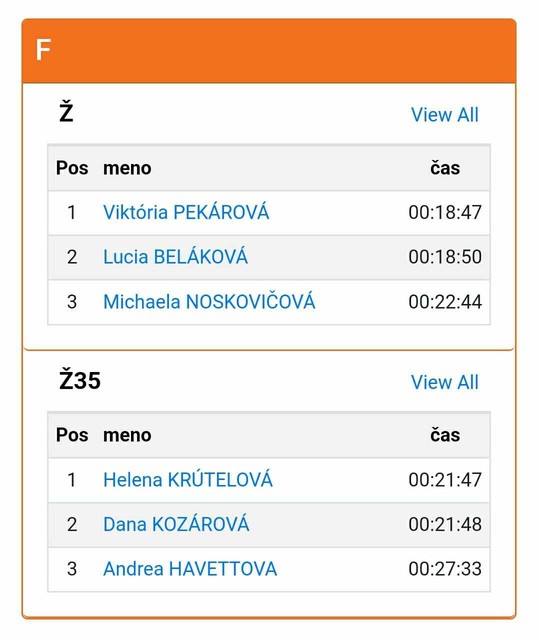 V kategórii žien do 34 rokov s časom 00:18:47 (najrýchlejšia žena podujatia) zvíťazila Viktória Pekárová .
