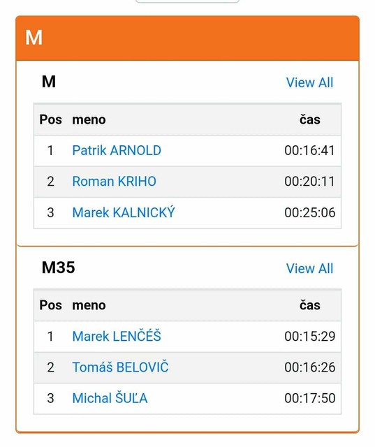 V kategórii 35+ zvíťazil a zároveň najrýchlejším mužom podujatia sa s časom 00:15:29 stal Marek Lenčéš.