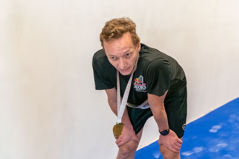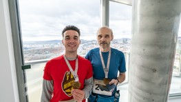 Medzi účastníkmi behu bol napríklad i učiteľ Marián Petrovský. Dosiahol čas 12:43.09, skončil na 292. mieste a my sme ho zastavili tesne po dobehnutí do cieľa na 44. poschodí. Ako prezradil, hoci určite nepatril mnedzi ašpirantov na víťaza, takéto adenalínové podujatia ho veľmi bavia.