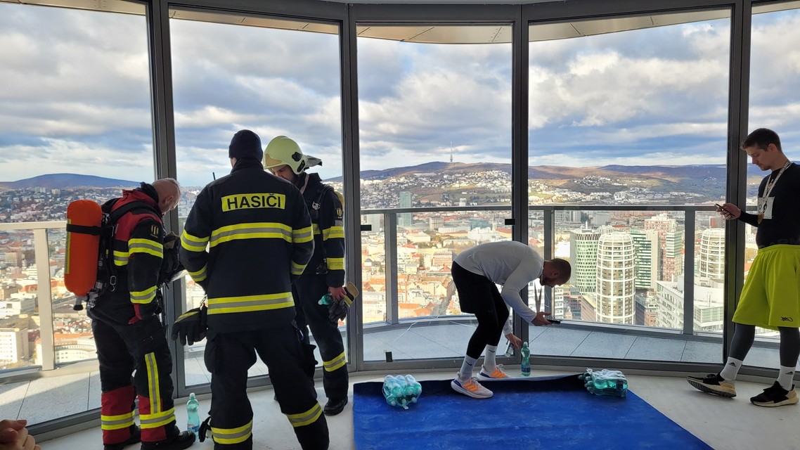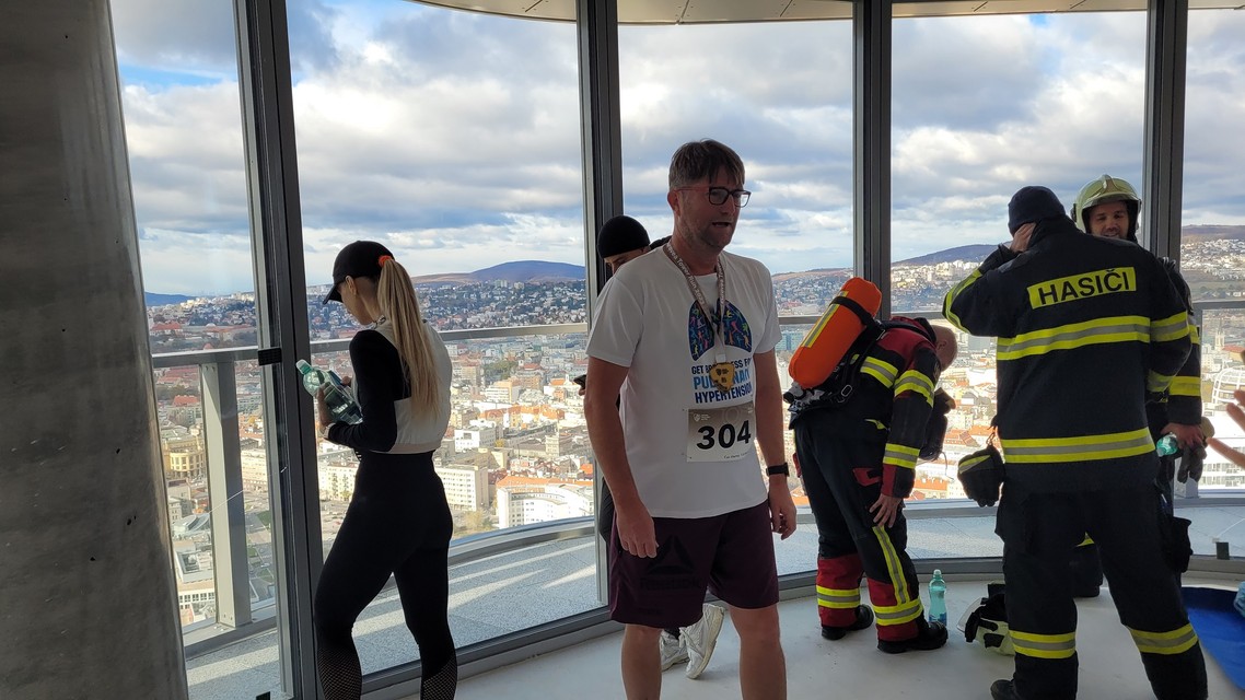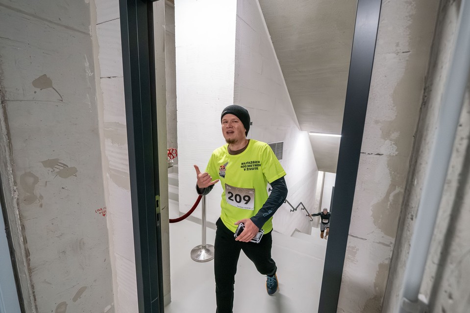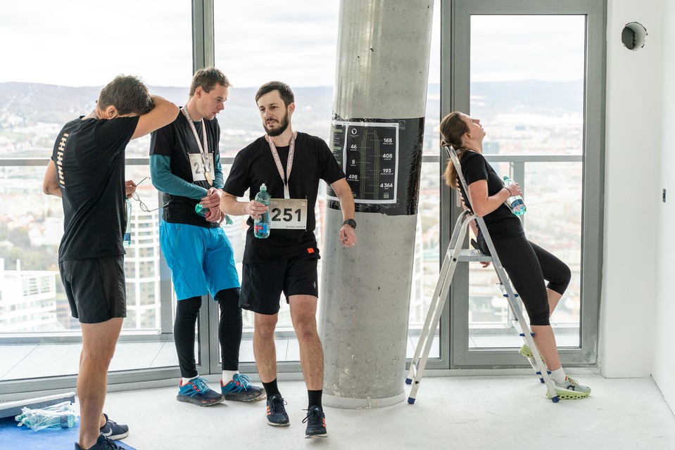 Na štart, teda pod najvyššiu budovu na Slovensku sa dnes postupne od 10:00 postavilo 330 pretekárov. Tí vybehli po 852 schodoch až na 44. poschodie, kde ich čakal cieľ, drobný darček a najmä medaila a fotografia na pamiatku z miesta, na ktoré sa hocikedy nedostanete. Po výkone si totiž mohli účastníci oddýchnuť v jednom z bytov mrakodrapu a urobiť na pamiatku fotografiu na jeho balkóne.