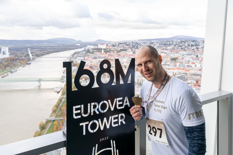 Adrenalín, makačka a veľká radosť zároveň. V Bratislave sa v sobotu 25.11.2023 konalo podujatie Eurovea Tower Run by JTRE. Bežci vybehli po 852 schodoch na 44. poschodie prvého slovenského mrakodrapu Eurovea Tower.