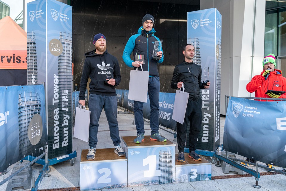 Víťazom v mužskej kategórii sa stal Štefan Štefina, ktorému na vybehnutie až na 44. poschodie stačili štyri minúty (04:12.27), na druhom mieste skončil Samuel Rybár (04:24.54) a tretím bol Daniel Trochta (04:42.93).