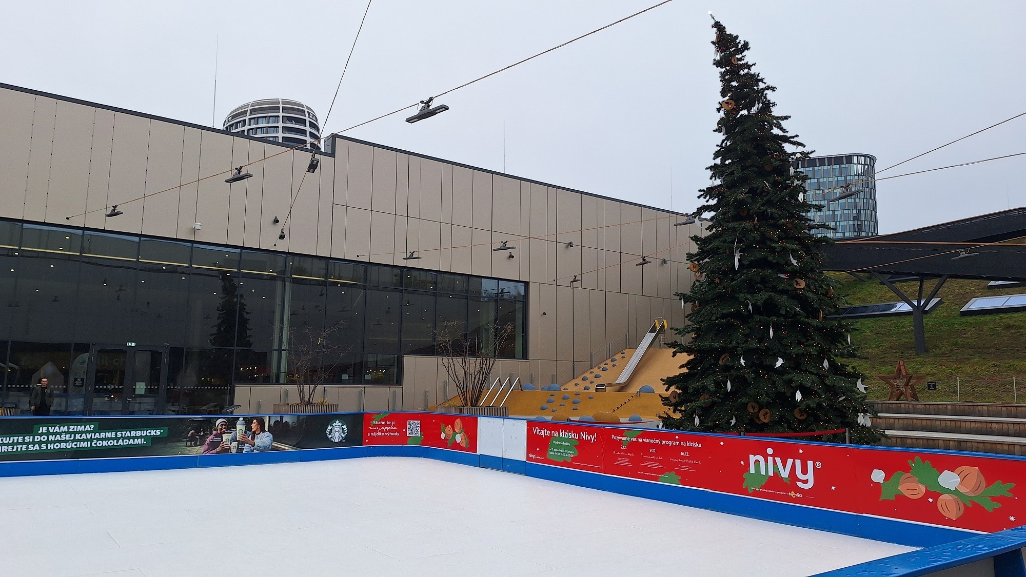 Miniatúrne umelé klzisko na streche centra Nivy je bezplatné.