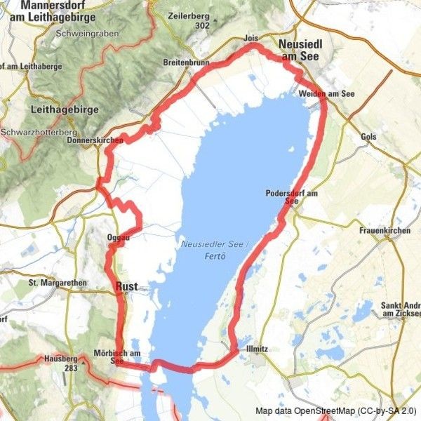 Môžete prejsť buď okolo celého jazera, teda časť trasy aj cez Maďarsko, alebo si môžete cestu skrátiť plavbou cez jazero trajektom z Rustu (mestečka bocianov) do Illmitzu alebo opačne.