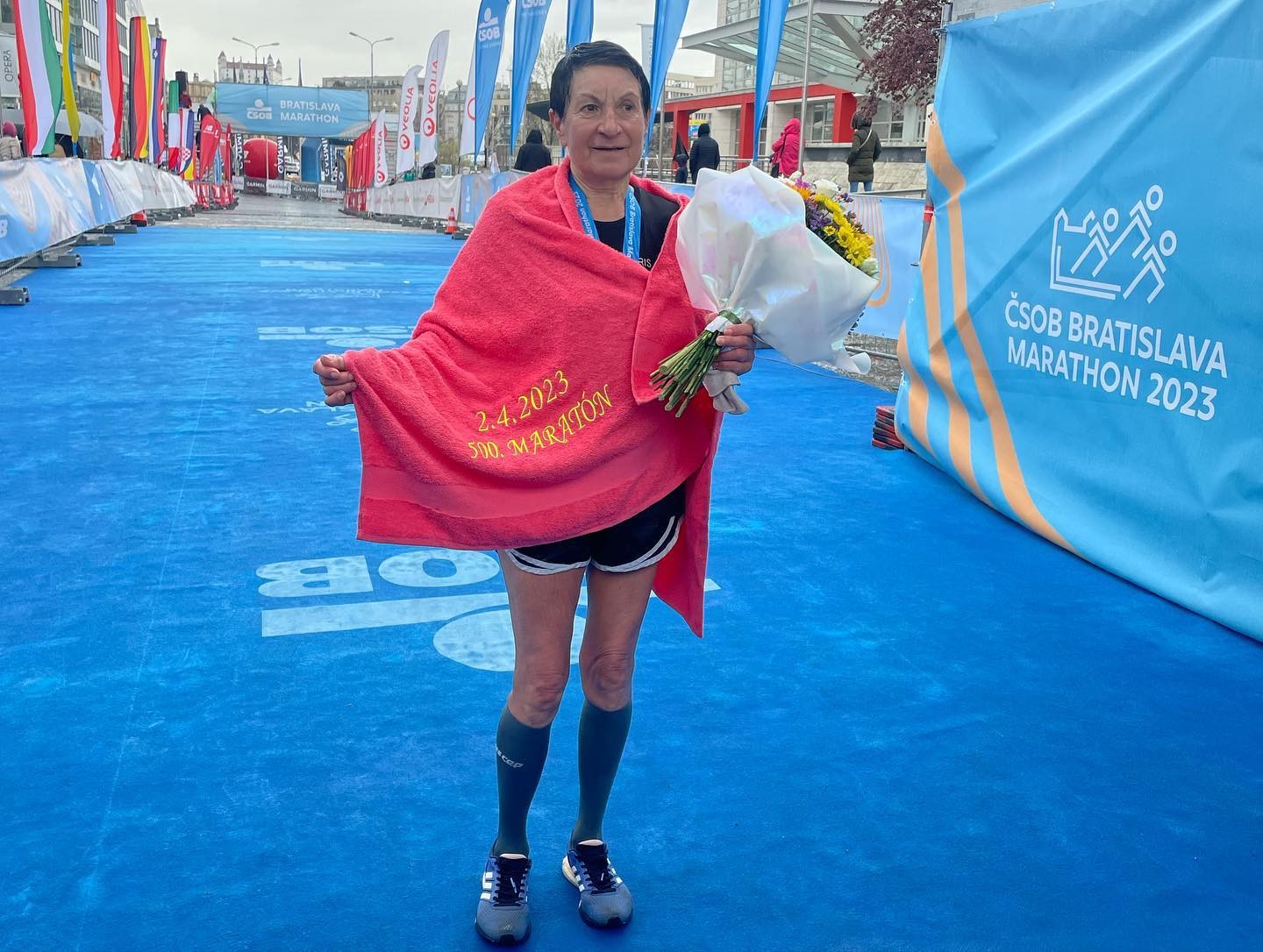 Eva Seidlová po absolvovaní 500. maratónu v roku 2023.