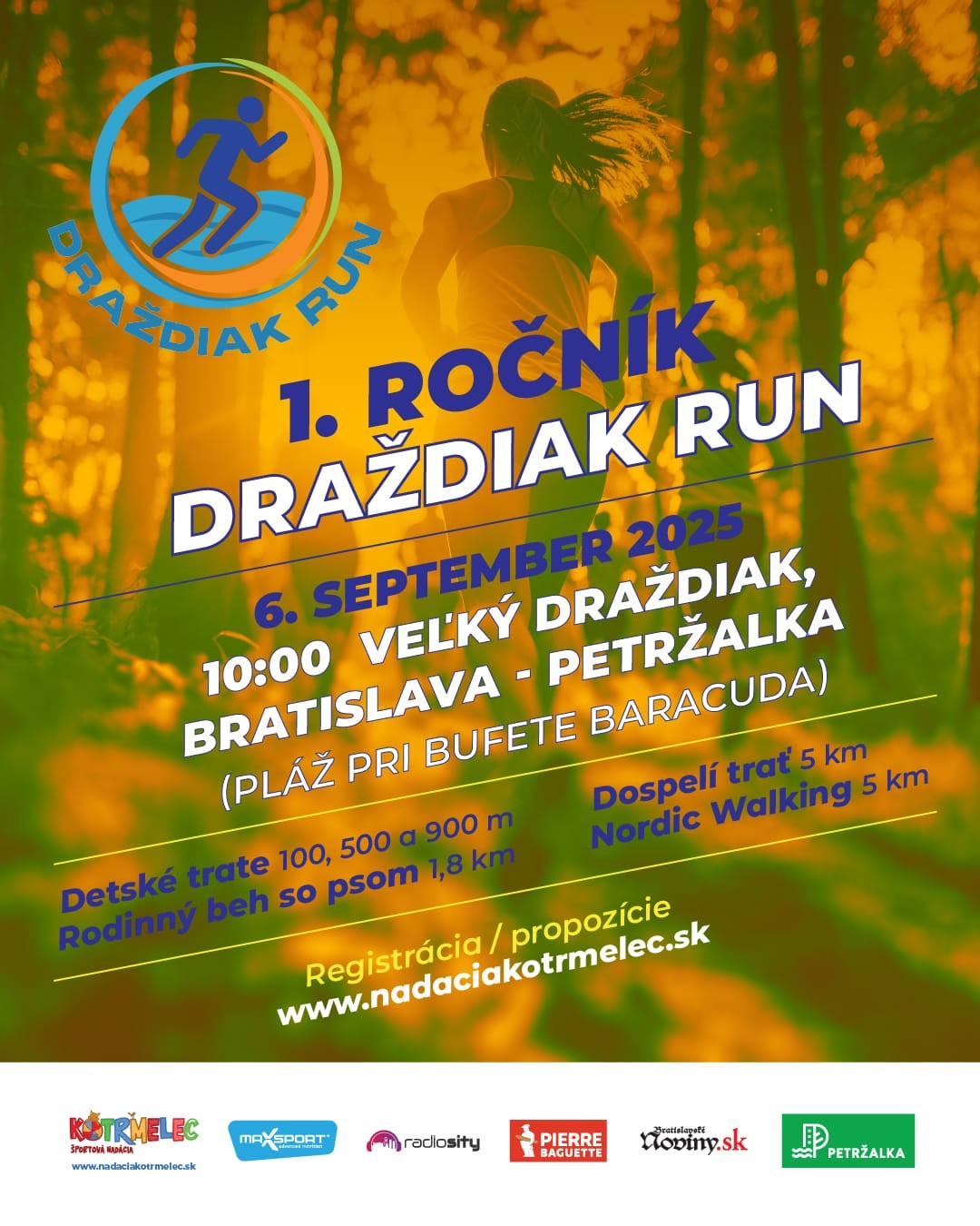 Prvý ročník behu Draždiak Run, ktorý organizuje Športová Nadácia kotrmelec, sa koná v sobotu 6. septembra pri Veľkom Draždiaku, konkrétne na pláži pri bufete Barracuda. Spomínanú nadáciu už v Bratislave poznáme vďaka celému radu úspešných podujatí, ktoré v Bratislave i na Slovensku roky organizuje. Prednedávnom to boli napríklad Majstrovstvá Slovenska v behu do schodov UFO Vertical Sprint či bežecké podujatie Tatry Charity Run.