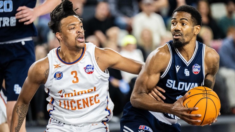 Zľava Eric Boone (Lučenec) a Jacob Evans (Slovan)V úvodnom zápase nového ročníka TIPOS SBL zvíťazili basketbalisti BC Slovan Bratislava v domácej Gopass Aréne nad BKM Lučenec 89:83.