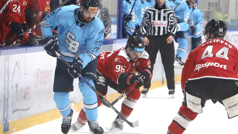 Radovan Bondra (Slovan Bratislava) a Carter Turnbull (Banská Bystrica)Líder hokejovej Tipsport ligy HC Slovan Bratislava prehral v piatkovom dueli 30. kola na ľade Banskej Bystrice hladko 0:5.