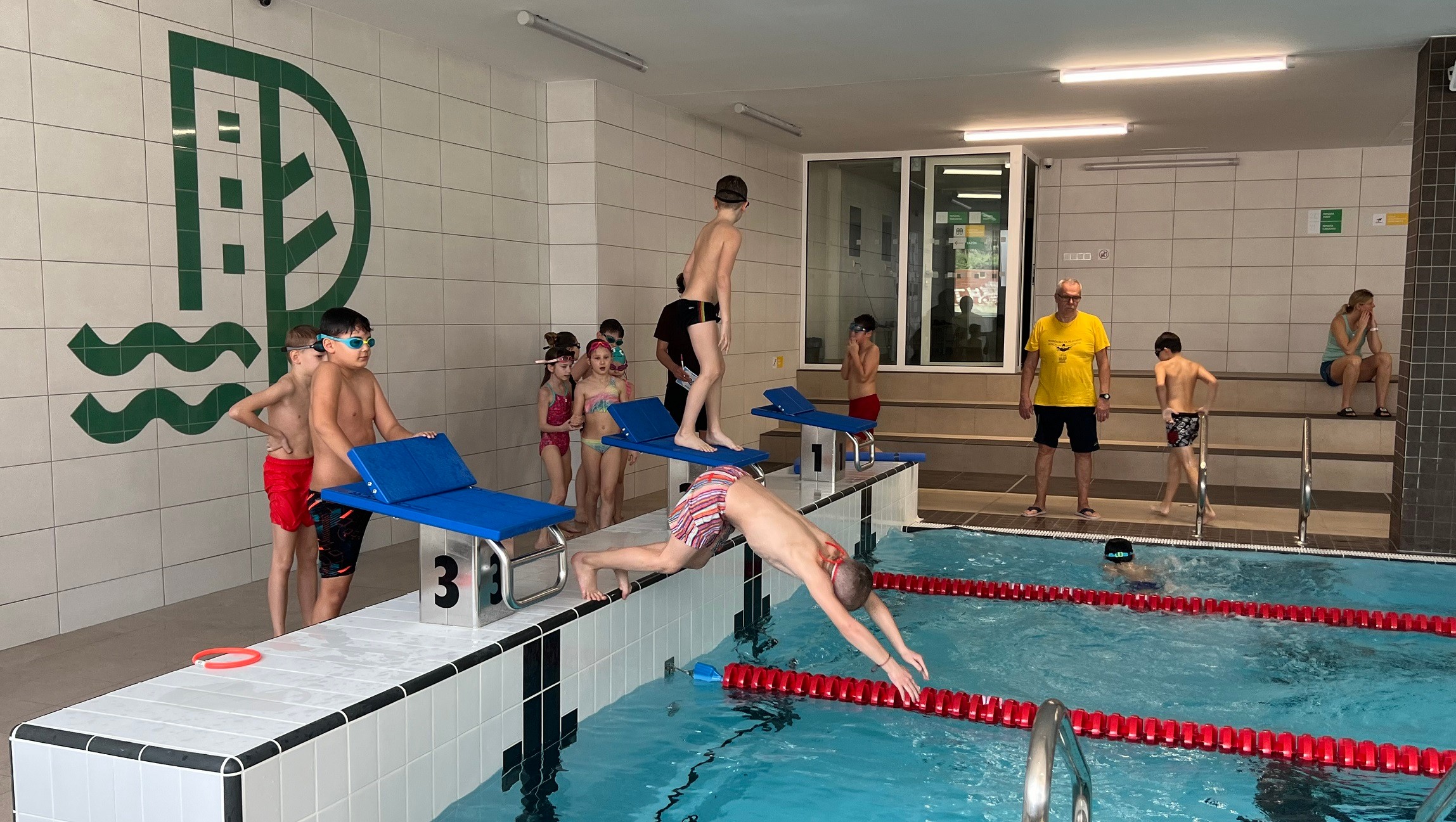 Školské bazény, ktoré Petržalka zrekonštruovala, slúžia deťom od prvého momentu. „Doteraz sme plávali na Petržalskej plavárni, ale so samosprávou sme sa dohodli, že do konca školského roka sa presunieme do bazéna na Budatínsku. Máme bazén len pre seba, nikoho neobmedzujeme a verejnosť nenadáva, že deti robia hluk, skáču a špliechajú, pretože to deti robia,“ pokračuje s úsmevom Rastislav Bielik. Na jedného trénera pripadá 7-8 detí, sú rozdelené v troch dráhach od začiatočníkov až po pokročilých. Sledujem deti skákať do vody, to je bezkonkurenčne najväčšia zábava, niekto len na nohy, niekto aj šípku, bez problémov plávajú na chrbte a viacerí už vedia plávať aj kraul, ktorý sa na kraul aj podobá!