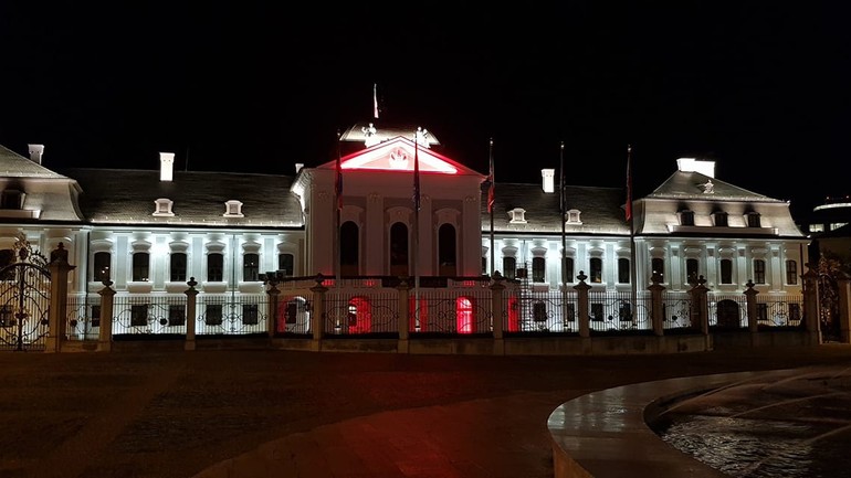 Prezidentský palác je sobotňajšieho (15. 8.) večera nasvietený na bielo-červeno. Ide o znak solidarity s občanmi Bieloruska, proti ktorým bola použitá sila, pretože sa verejne postavili na obranu slobody a demokracie. Informoval o tom hovorca prezidentky Martin Strižinec.