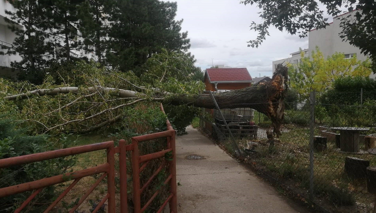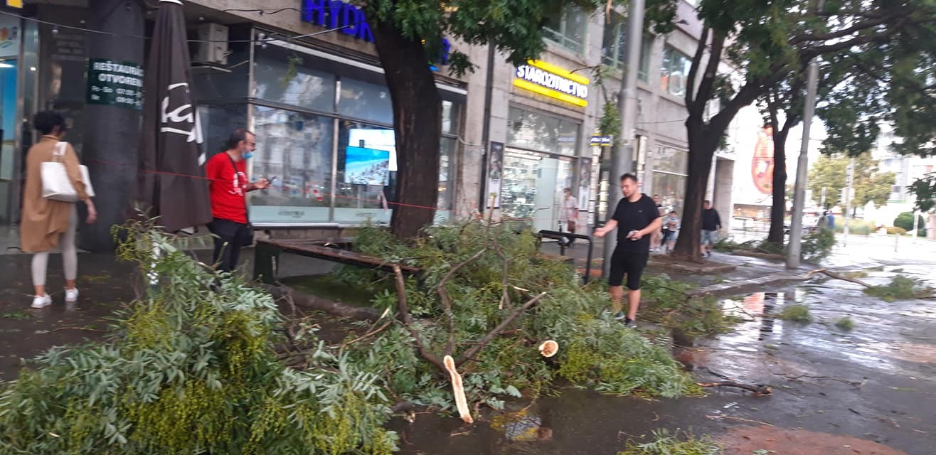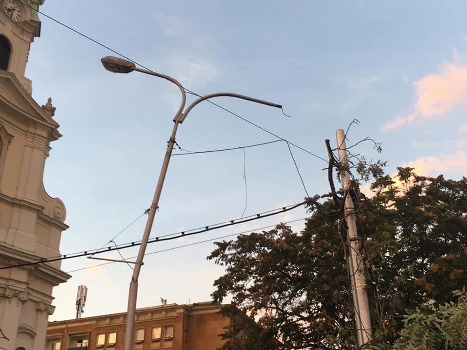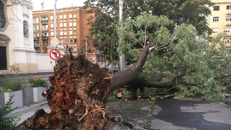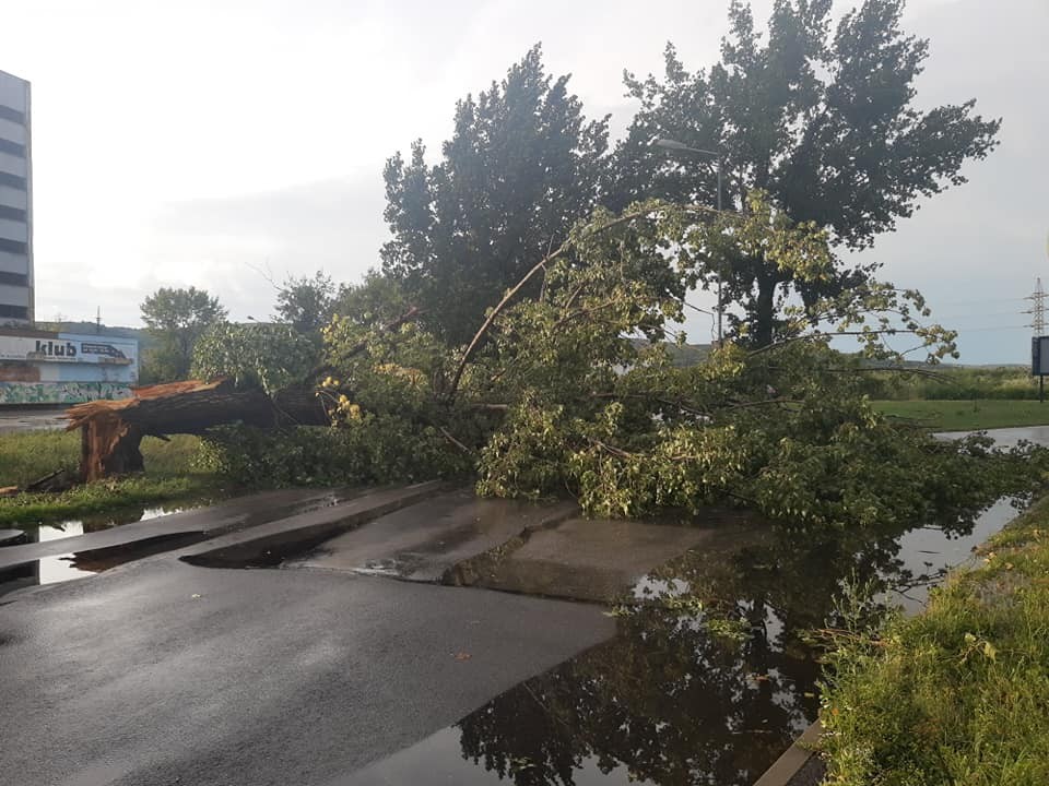 V nedeľu podvečer Bratislavu zachvátila krátka, ale veľmi intenzívna búrka. Bola sprevádzaná silným vetrom a veľmi zlou viditeľnosťou. Vo viacerých častiach mesta víchor lámal konáre stromov a na Špitálskej ulici jeden z nich dokonca vyvrátil aj s koreňmi, spolu s kusom asfaltu a za obeť živlom padla aj lampa verejného osvetlenia.