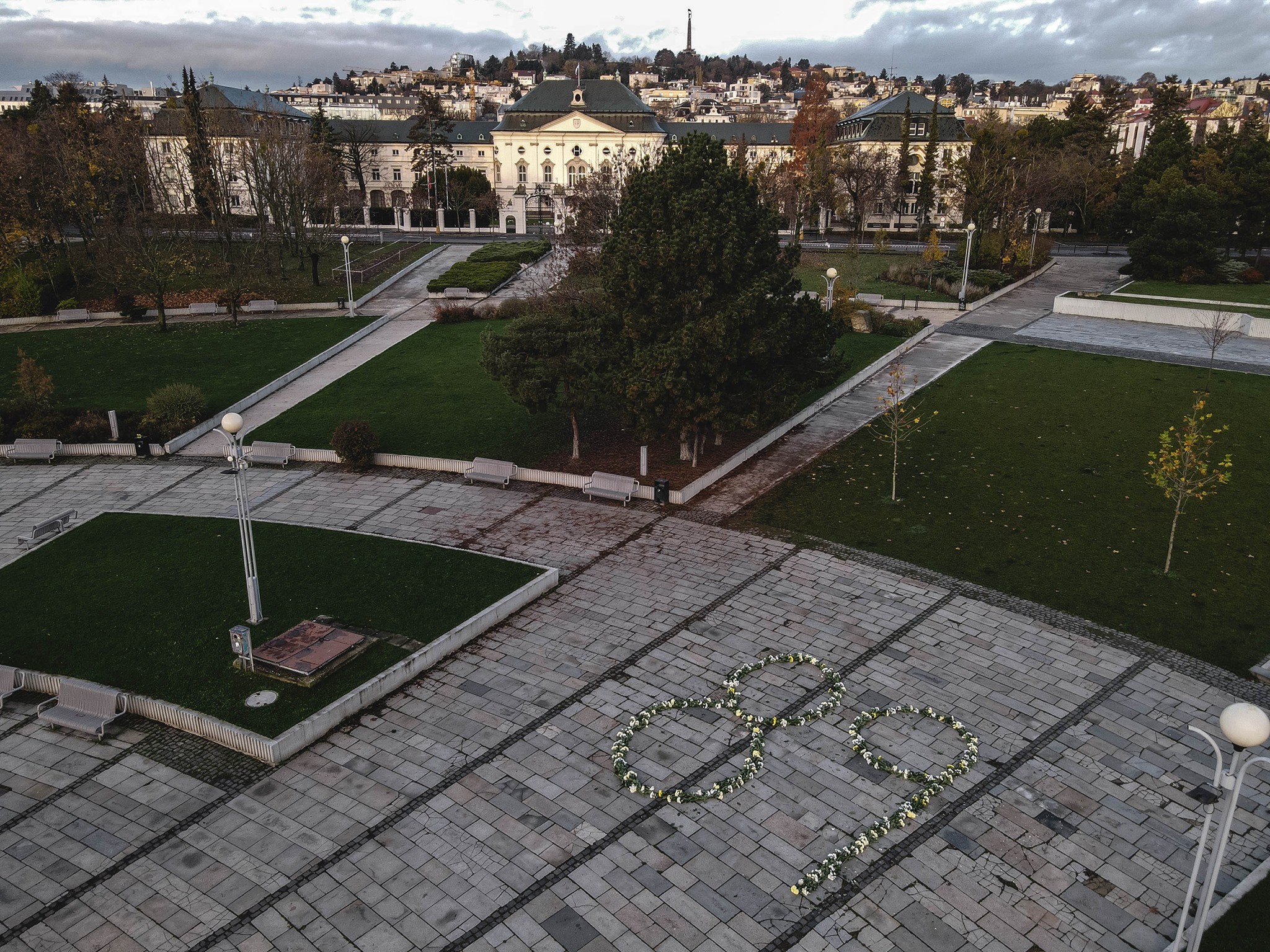 FOTO: Na viacerých námestiach vytvorili z kvetov čísla 89 - snáď prežijú aj dnešné protesty...