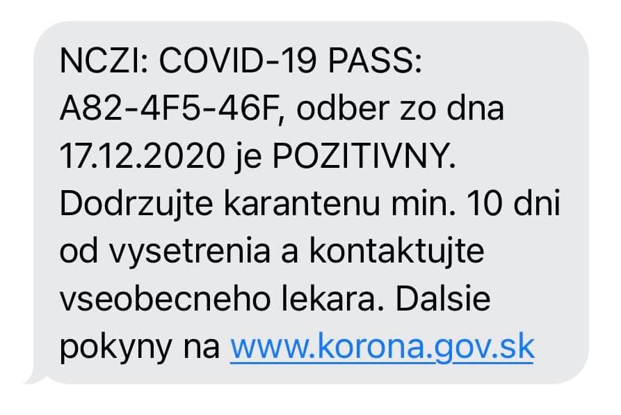Matovičova sms o výsledkoch testu z laboratória.