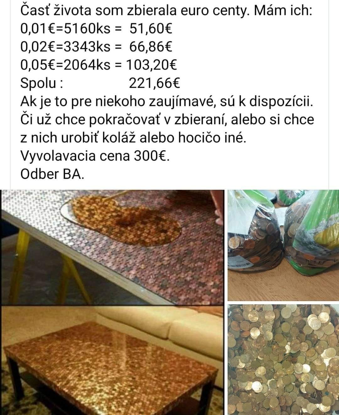 Nevedno či bol tento inzerát myslený vážne alebo ide o žart, pretože získať tisíce drobných mincí v celkovej hodnote 226 eur za sumu 300 eur a viac, sa nejaví byť ako veľmi výhodný, respektíve výnosný obchod...