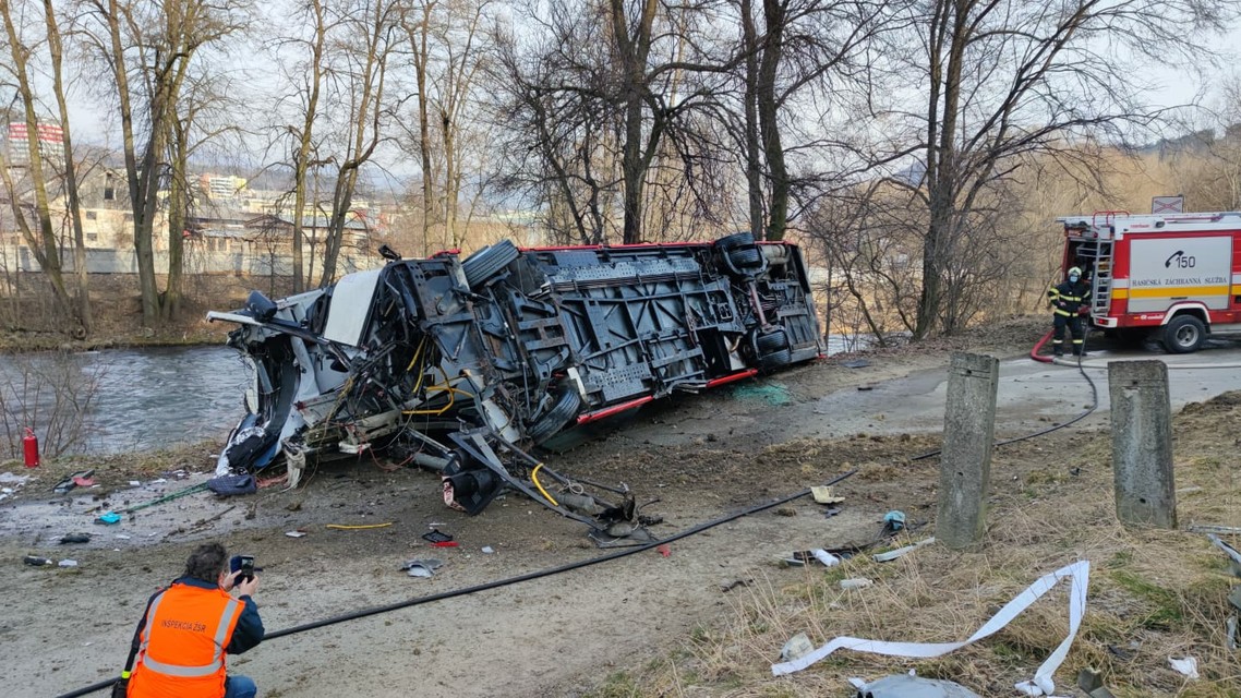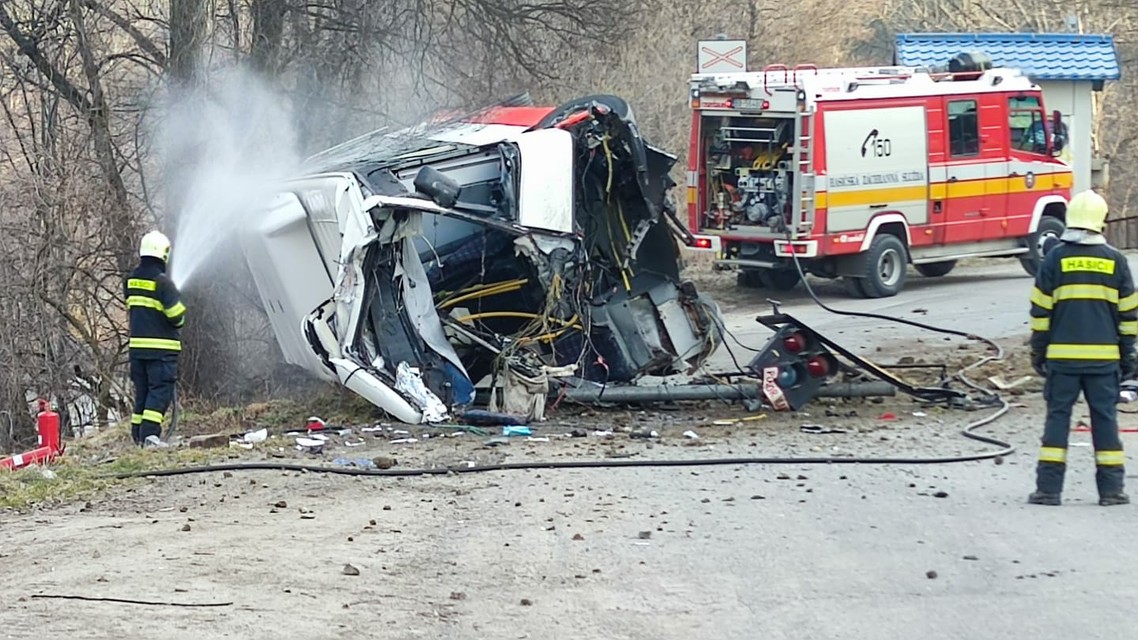 "Po zrážke skončil autobus s CNG pohonom prevrátený na boku, zo štyroch pasažierov sa zranili dvaja. Vo vlaku sa v čase nehody nachádzalo päť osôb, ktoré neboli zranené. Banskobystrickí hasiči zamedzili úniku plynu z autobusu, ktorý má poškodenú zadnú časť. Na mieste bolo 12 príslušníkov," informovali hasiči.
