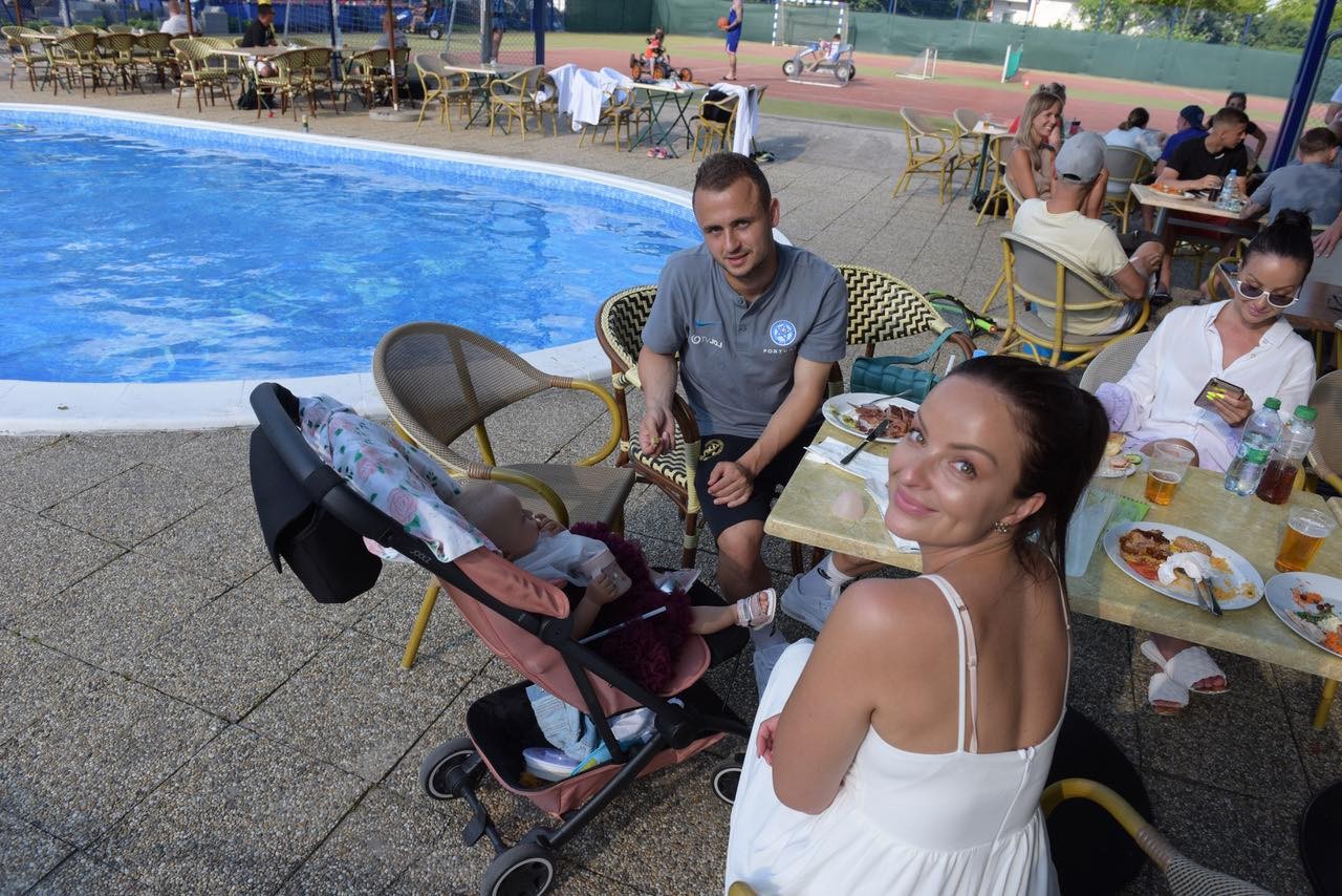 Futbaloví reprezentanti sa pred odletom do Petrohradu mali možnosť stretnúť a rozlúčiť so svojimi manželkami a deťmi. Na snímke Stanislav Lobotka s partnerkou Danielou, jej sestrou Veronikou a dcérou Lindou.