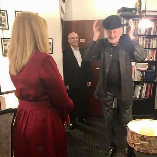 Fotografia Zuzany Čaputovej a Milana Lasicu vznikla vlani, keď herec oslavoval 80. narodeniny. V pozadí jeho dlhoročný spolupracovník Pavol Danišovič.