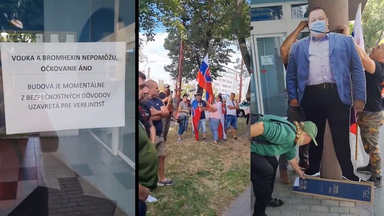 Pokoj, ktorý priniesol svojou návštevou Svätý otec František nevydržal na Slovensku ani deň. Už dnes sa pred sídlom Úradu verejného zdravotníctva na Trnavskej ceste konal protest proti pandemickým opatreniam. Zišlo sa tu niekoľko desiatok ľudí a keď zistili, že budova je prázdna, tak sa rozhodli, že na jeden zo stĺpov zavesia kartónovú podobizeň hlavného hygienika Jána Mikasa...